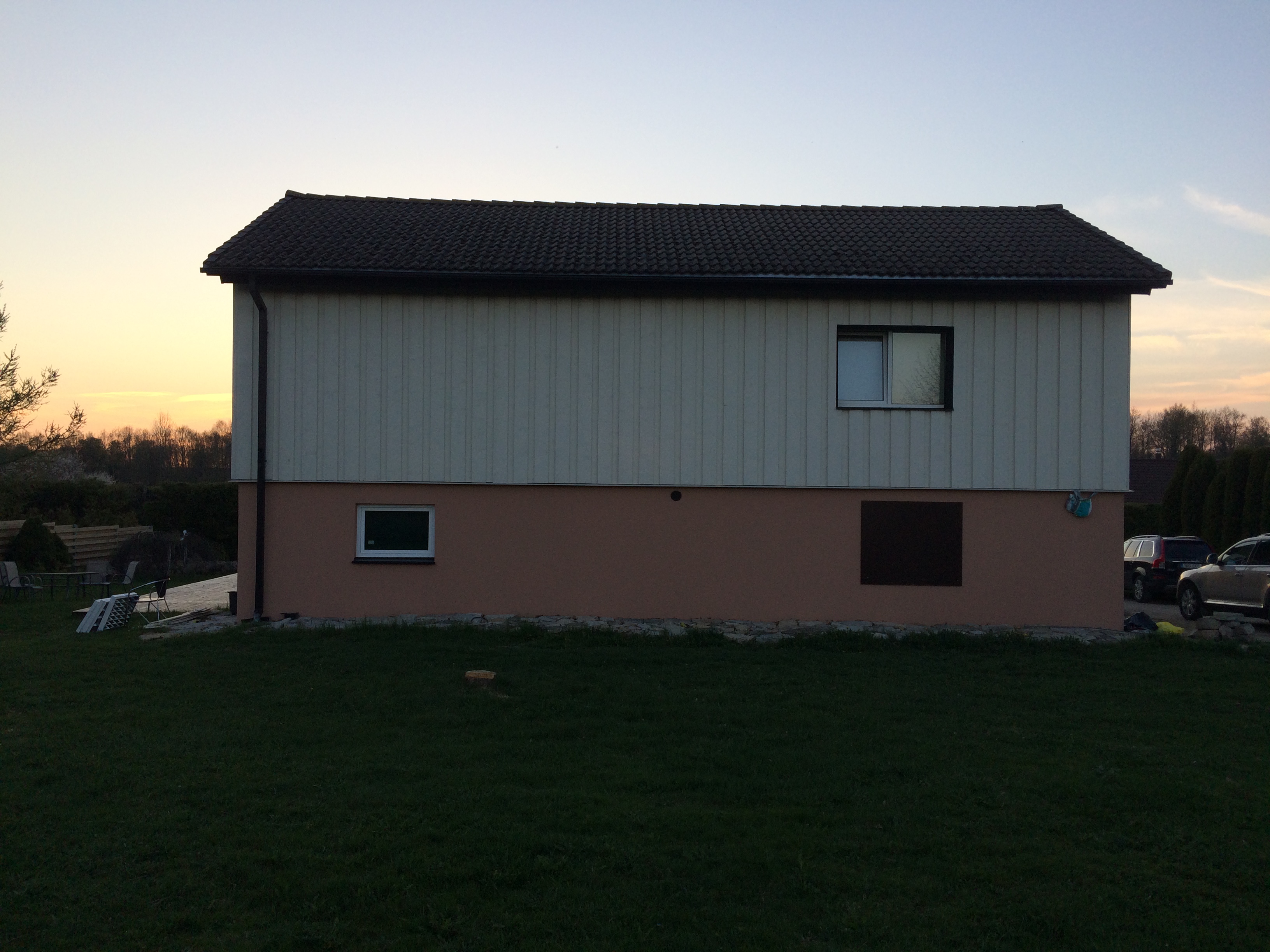 Garaazi katuseks on kivikatus. Seina materjal fiboplokk+ soojustuseks 100mm penoplast+ krohv. Garaazil on mõlemas külgseinas aken (aknad olemas- plastik aknad "Plasto" toodang aastast 2015).