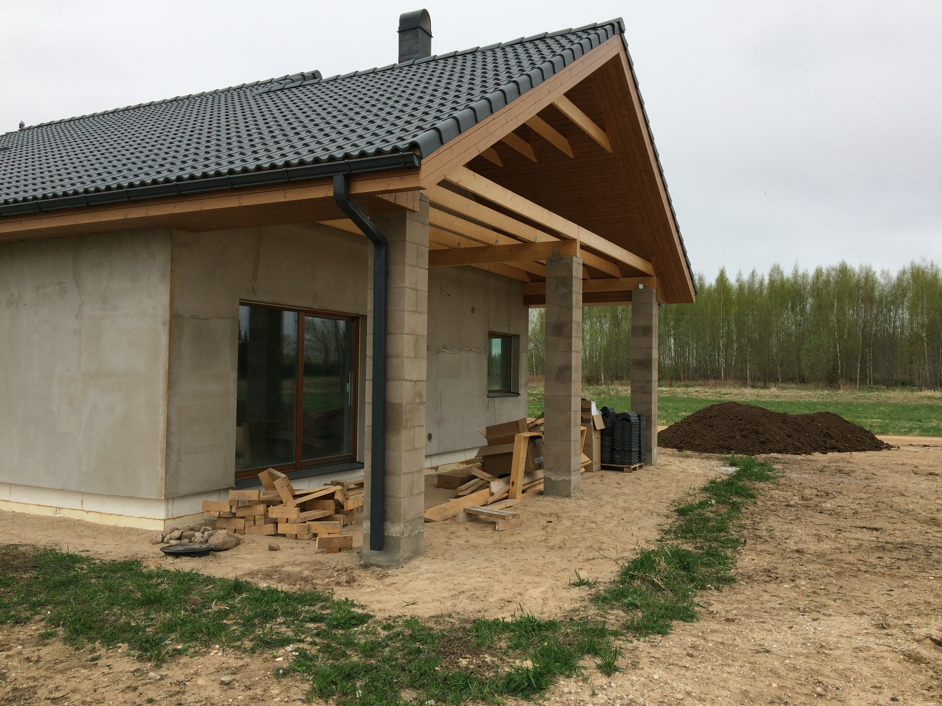Terrassi plaan on manuses. Terrassi kandekonstruktsioon peaks kinnituma betoonist vundamendile ja kivist postidele. Ei ole tarvis maasse kaevata vundamenti - piisab kui jämedamad talad kinnitada kandekonstruktsiooniks postide ja vundamendi vahele, millele hiljem saab kinnitada laudise. Töö toimuks kahes etapis - esmalt kandekonstruktsioon. Teiseks hiljem, kui maja saab krohvitud, terrassilaudis ja piirded kolmes küljes, v.a. selles osas kus on trepp. Piirde kõrgus ca meeter ja tüüp selline natu on toodud lisatud joonisel