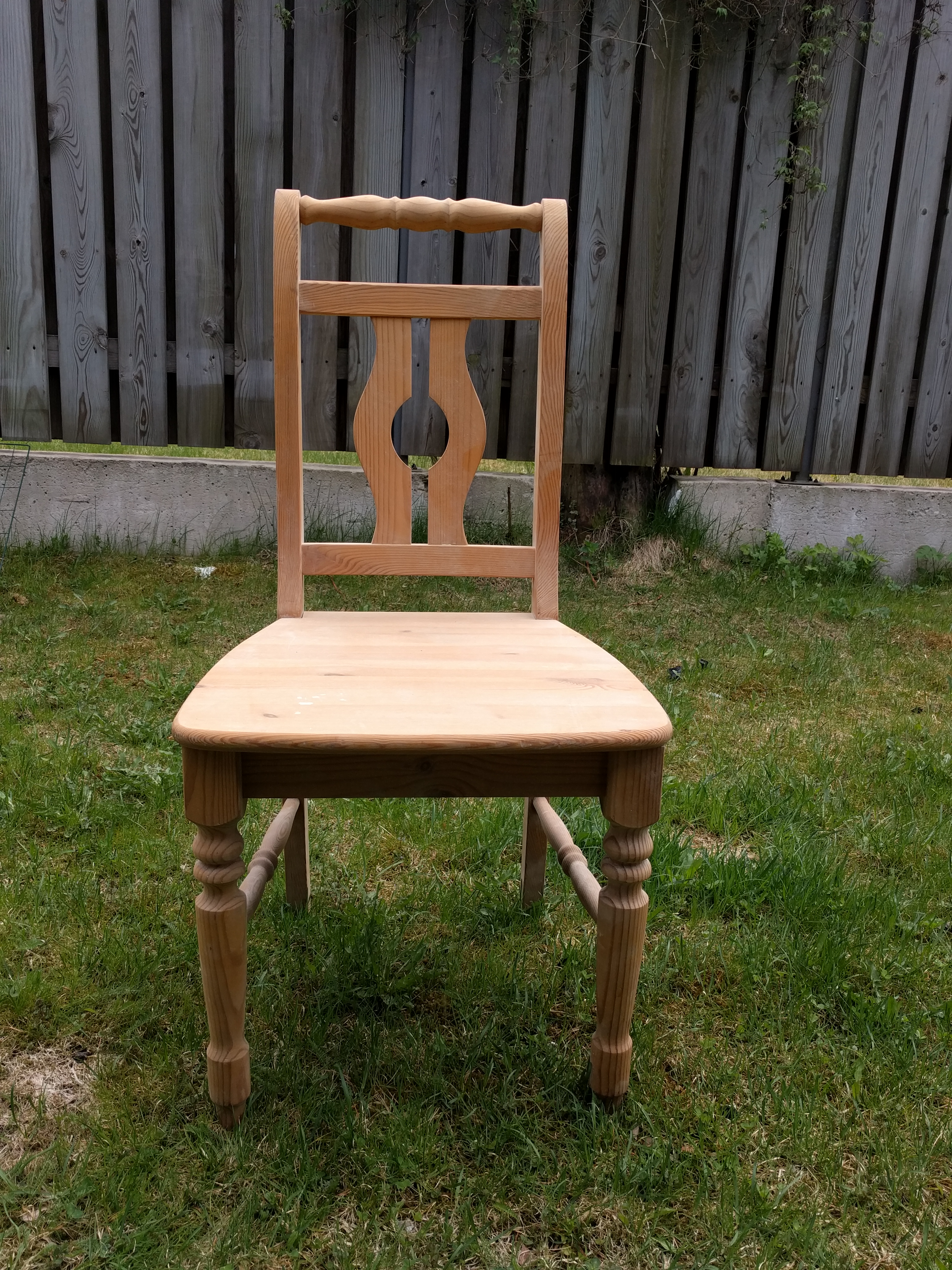 Vaja on õlitada valge ilmastikukindla puiduõliga 12 tooli, 2 kihti õli. Hetkel töötlemata puit. Õli ja pintslid on olemas.