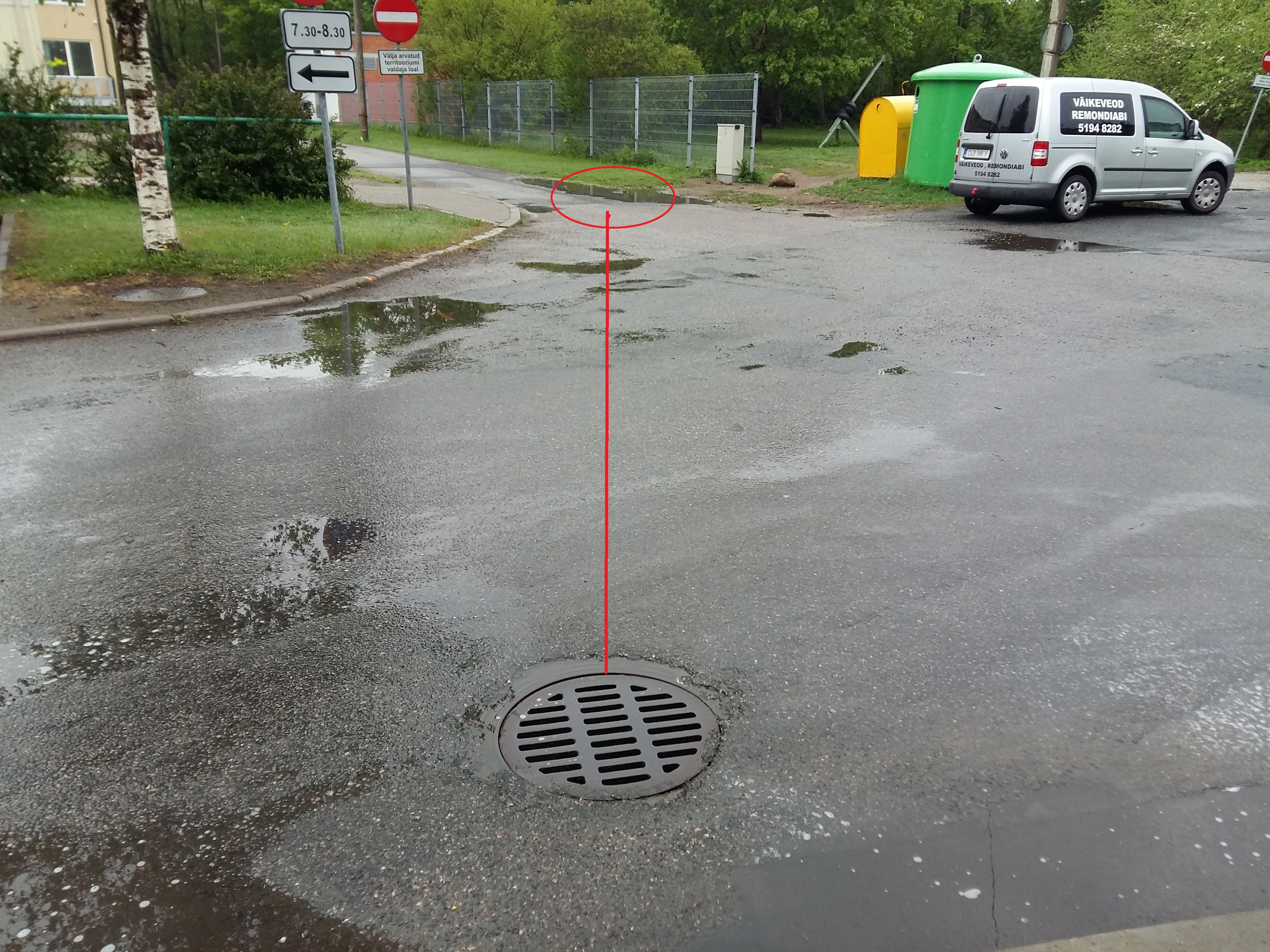 Olemasolevasse kaevu(plaanil 66) on vaja ehitada sadetrass koos kaevuga algusega kõige madalamast kohast(vaata pildil olev loik) Plaanil on katkendliku joonega ehitatav trass.