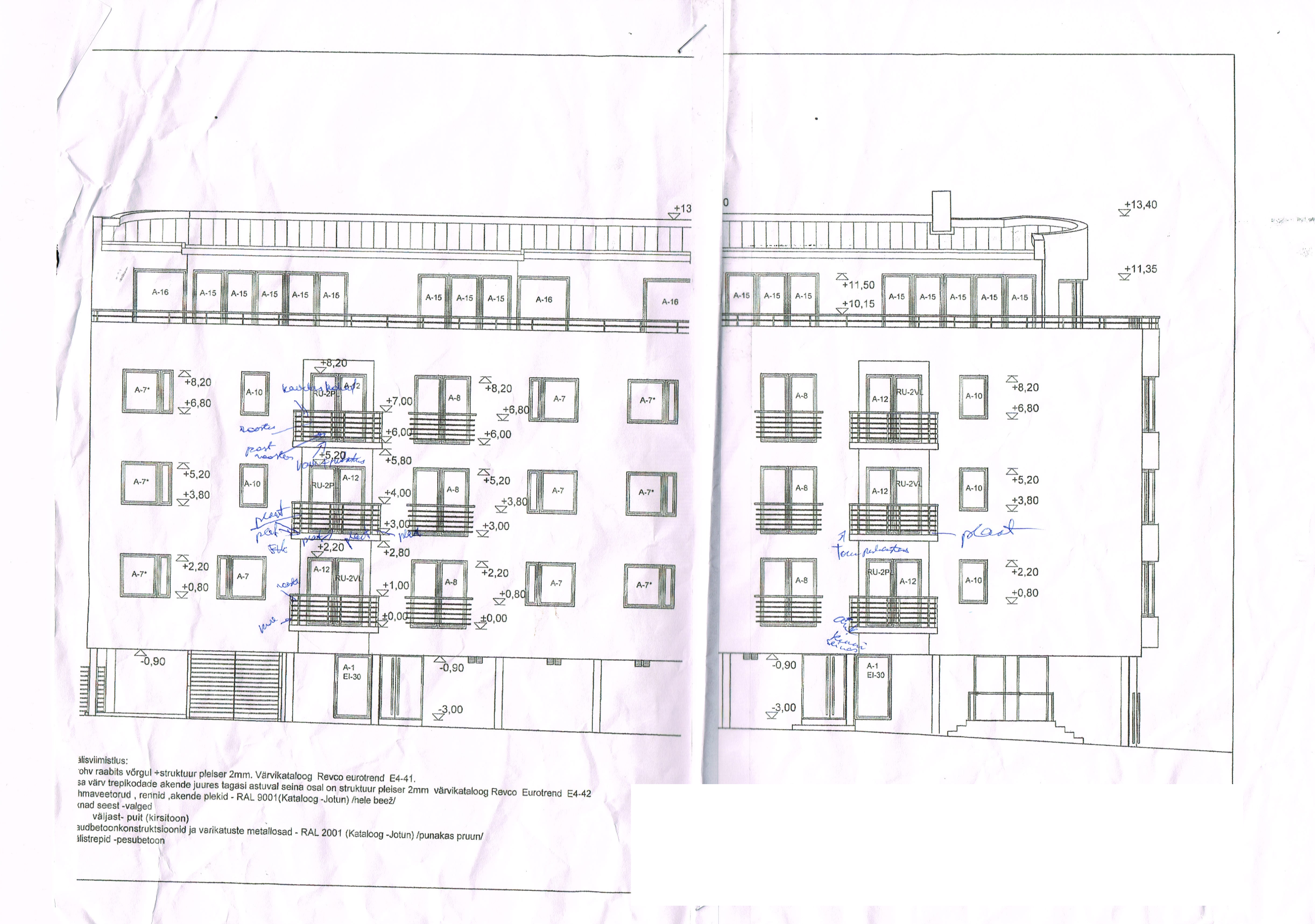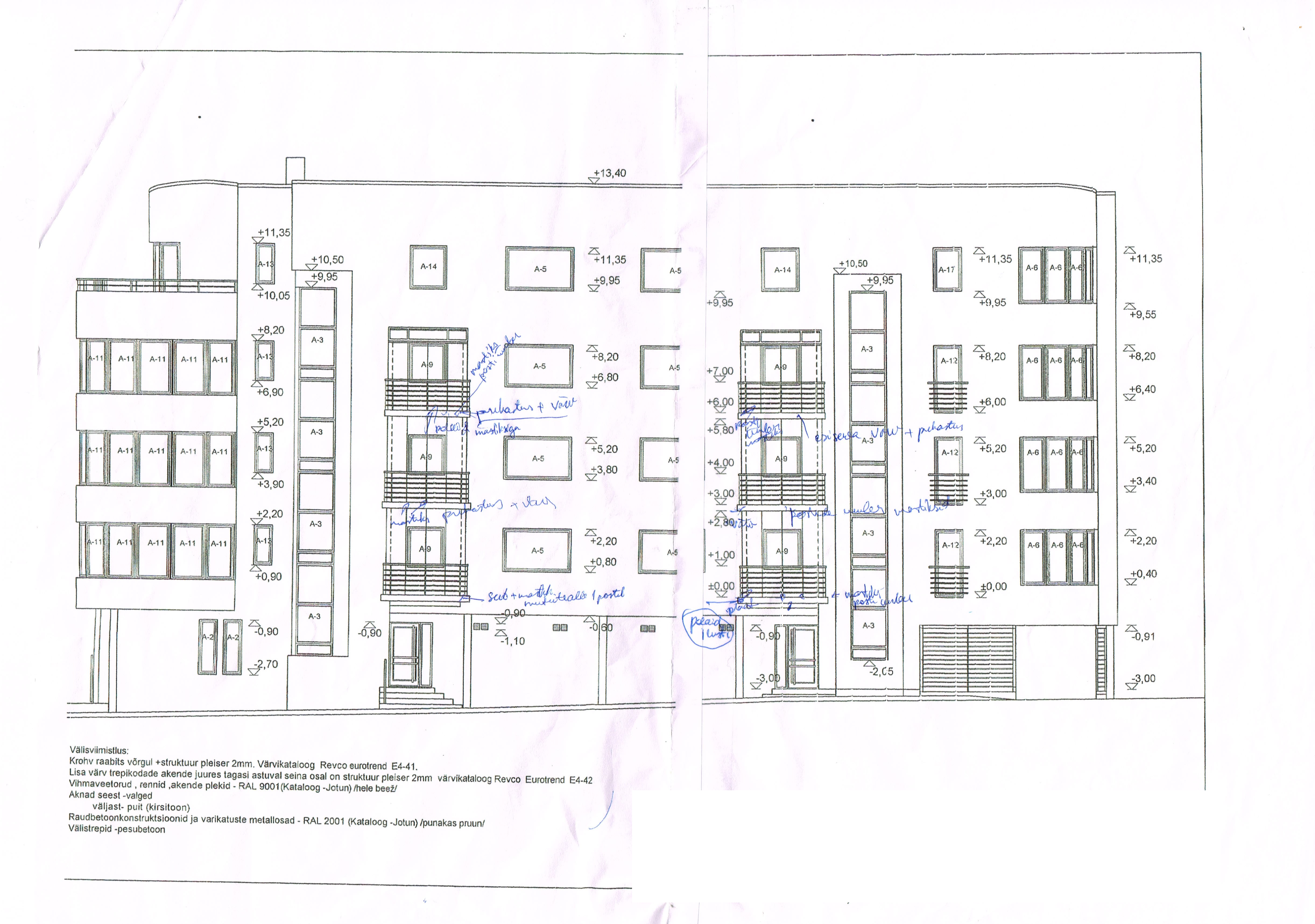 5. Elamu esifassaadil nelja rõdu esiosad puhastada ja värvida. Rõdupiirete kinnitused, mis jäänud mastiksiga isoleerimata, isoleerida mastiksiga. Paigaldada puuduvad seibid (lisatud kirjeldus joonisega)