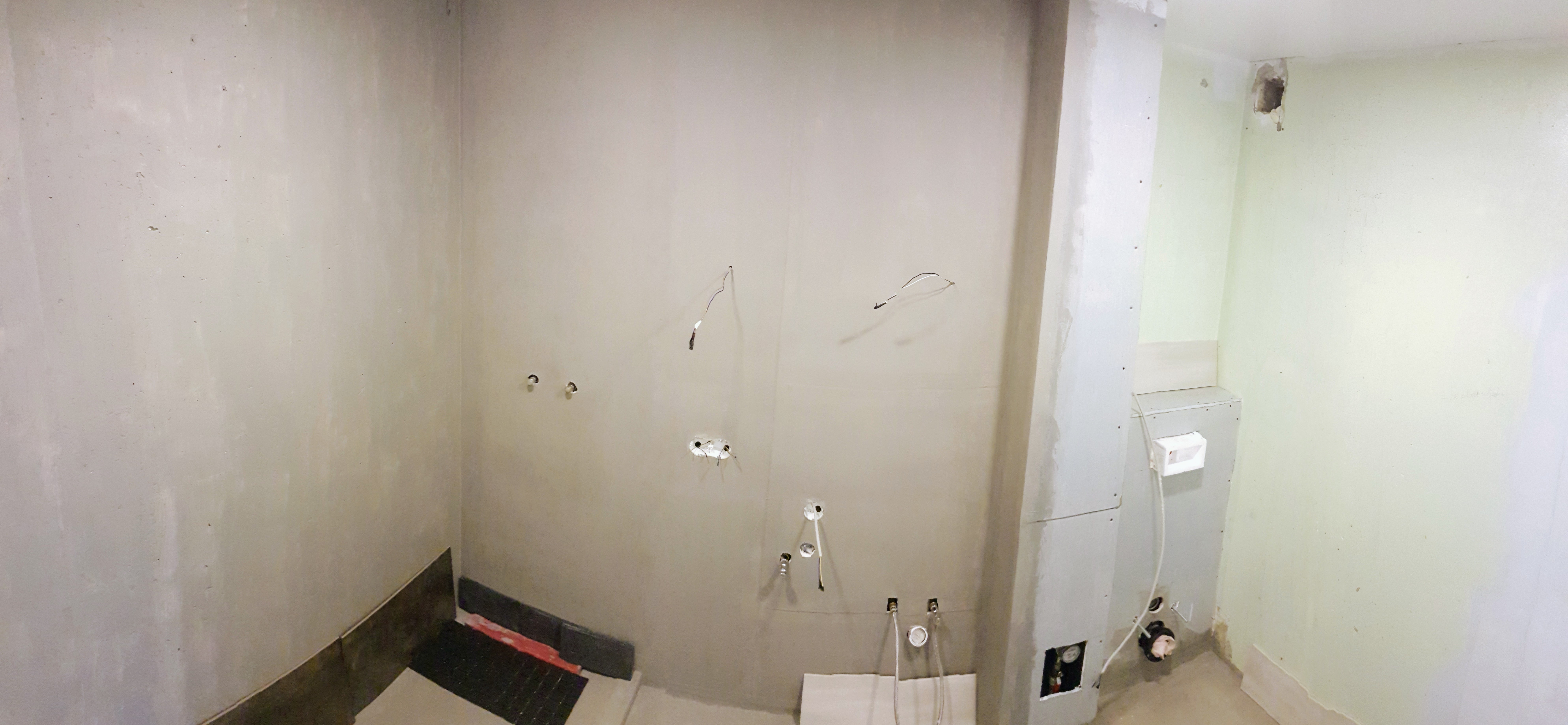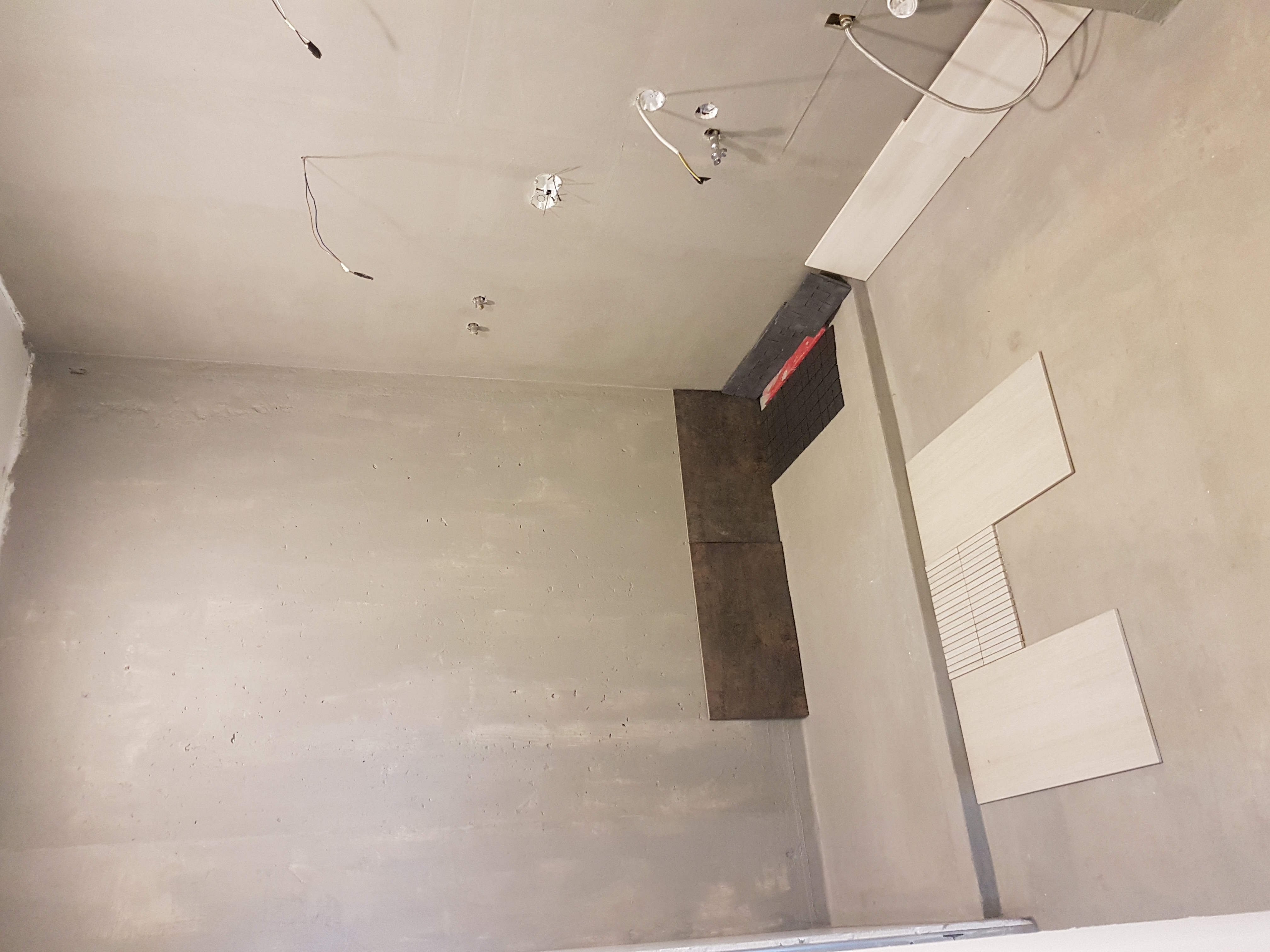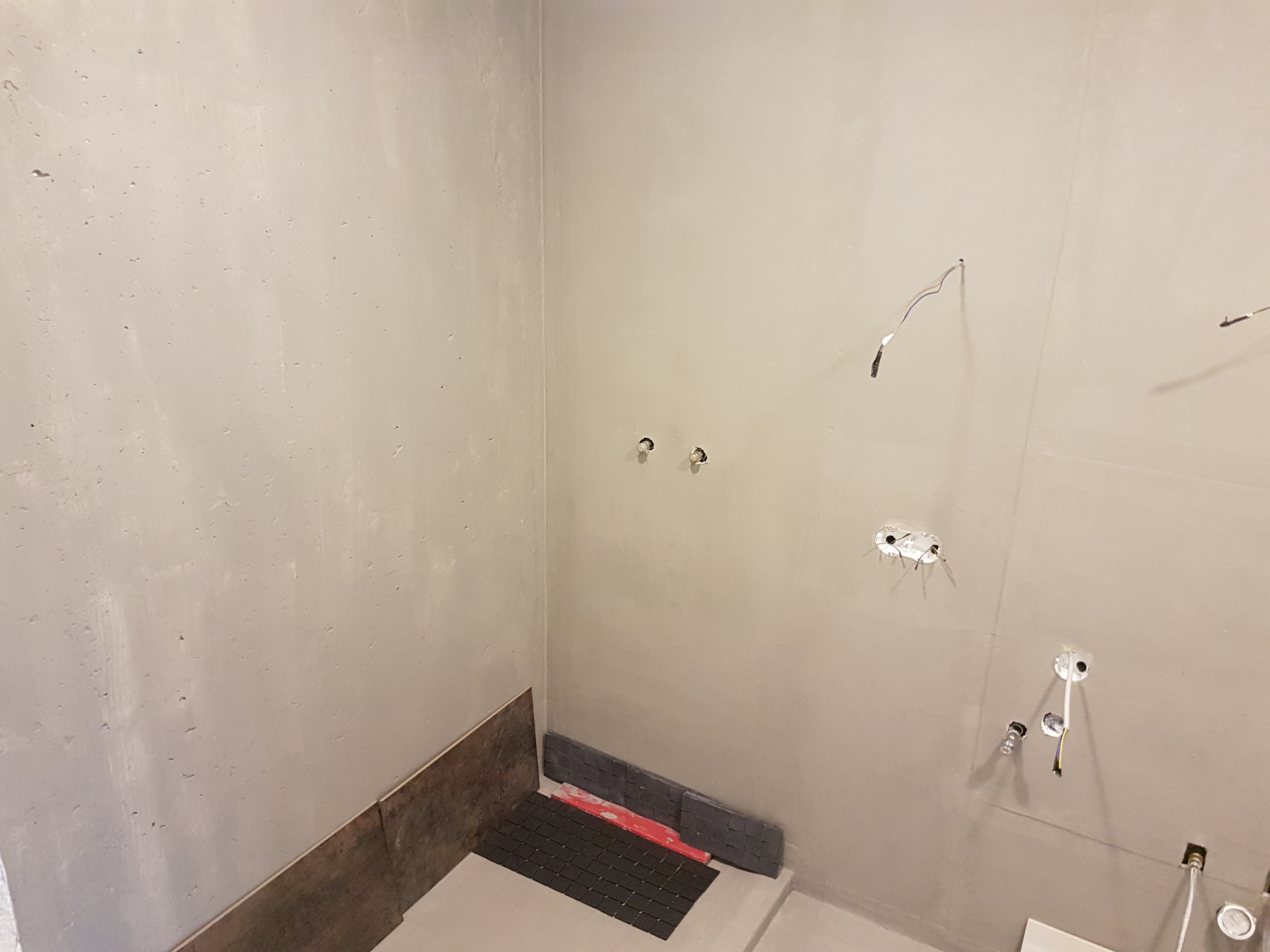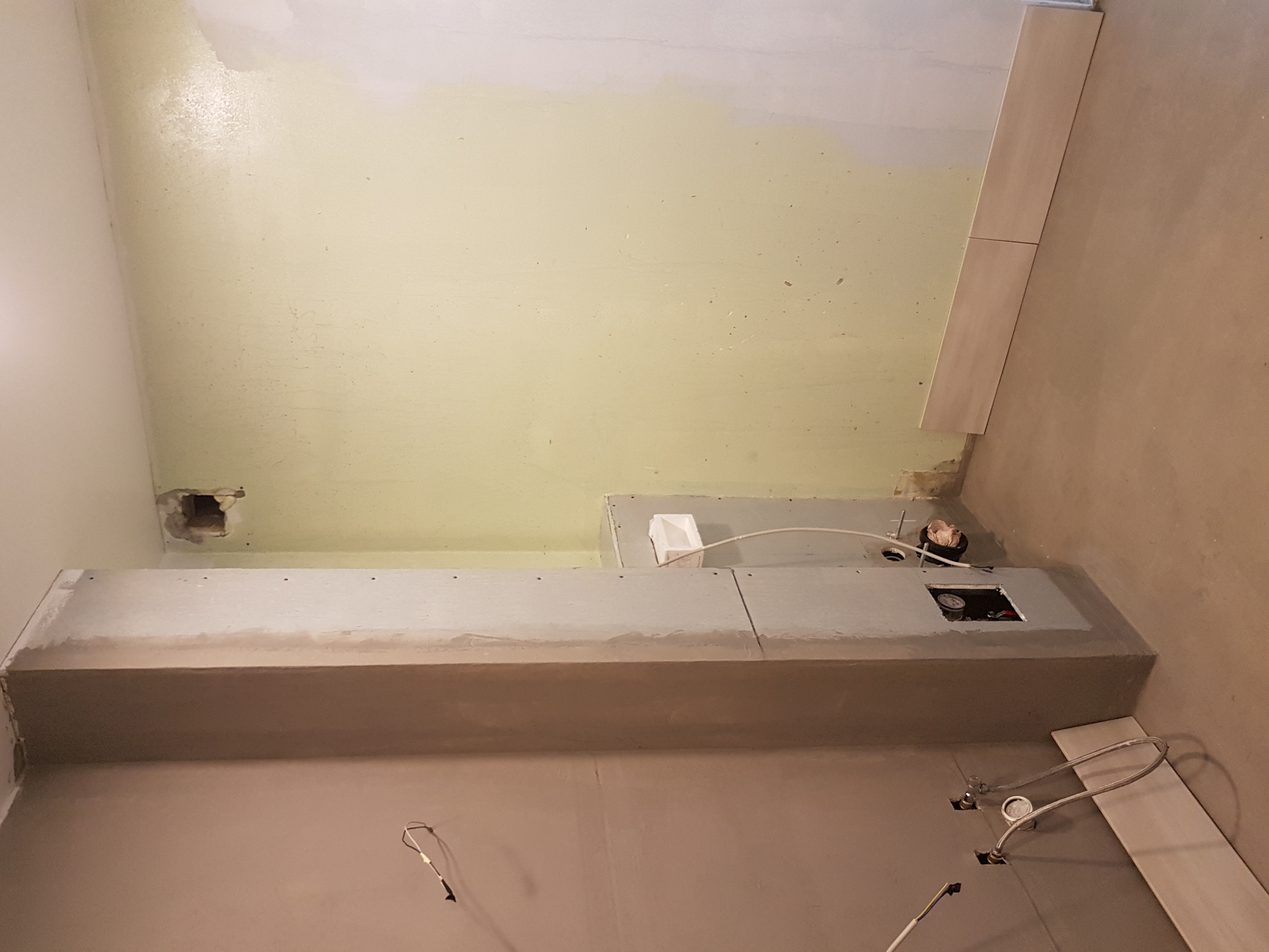 Vannitoa plaatimine, põrand ja 3 seina, hüdroisolatsioon tehtud.