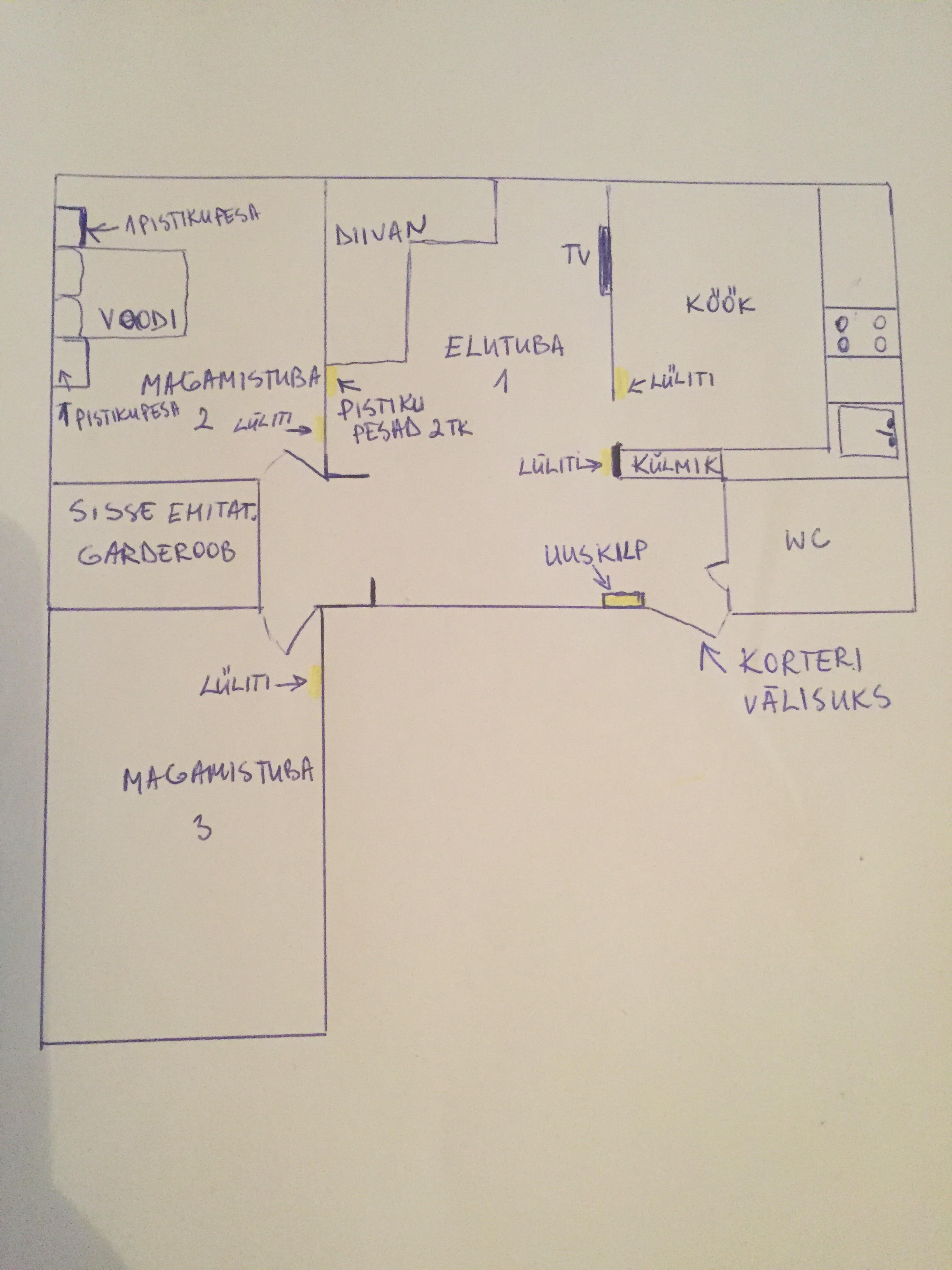 Vahetada kogu elektrijuhtmestik 3-toalises korteris Mustamäel seintesse freesimisega. Paigaldada uued pistikupesad, lülitid ja uus kilp koos rikkevooluga.
