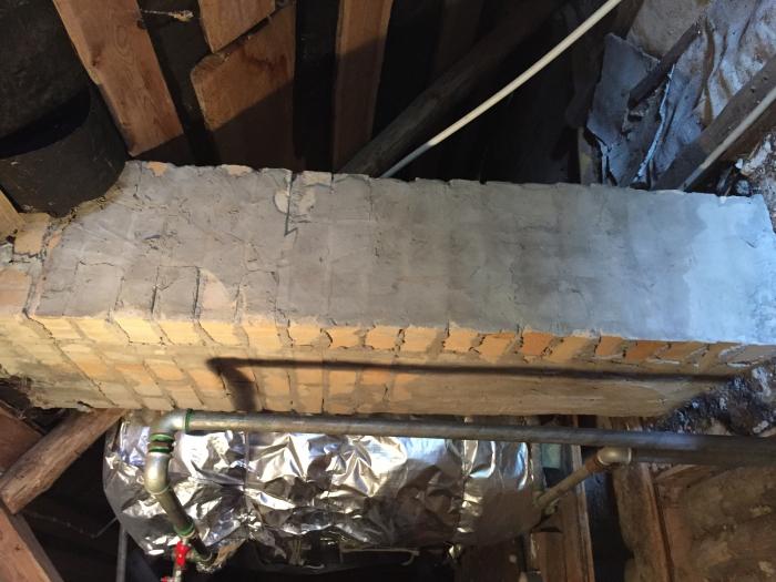 Sauna korstna uuesti ladumine, tõenäoliselt alates pööningult. Pööningul ca. 1,5 meetrit korstent. Katusele ümbrise paigaldamine.