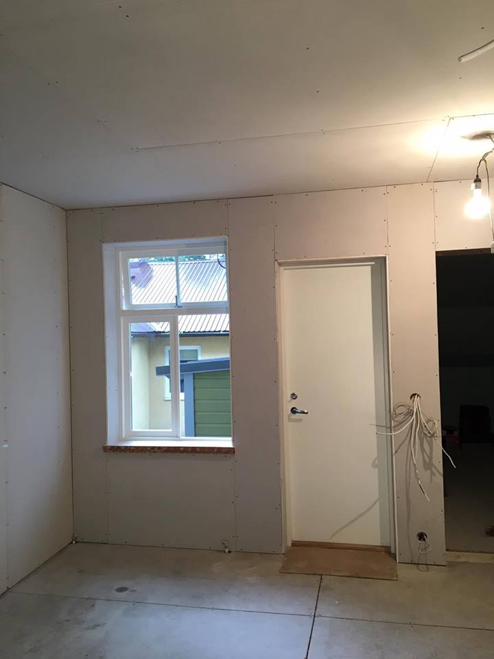 Seinte ja lae pahteldus, lihvimine, kruntimine. Akna ja uksepalede viimistlus koos nurgatugevdusliistuga.