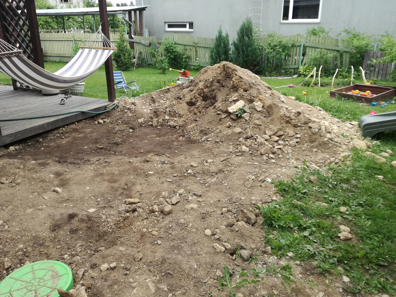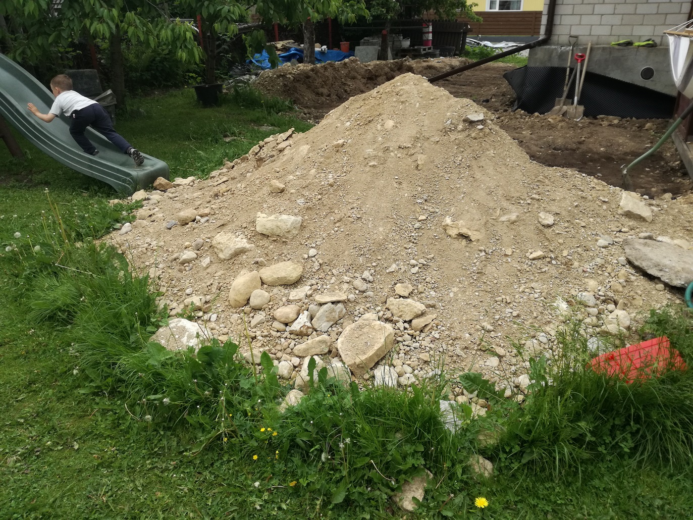 Rakveres oleks vajaära vedada mõned hunnikud pinnast (kruus, leidub suuremaid väiksemaid kive jne), mis seoses vundamendi soojustamise ja drenaažipaigaldusega üle jäi. Täpset kogust ei oska öelda, aga pakun, et max 5-10m3 (lisatud pildid). Ligi pääseks vast bobcati taolise agregaadiga.