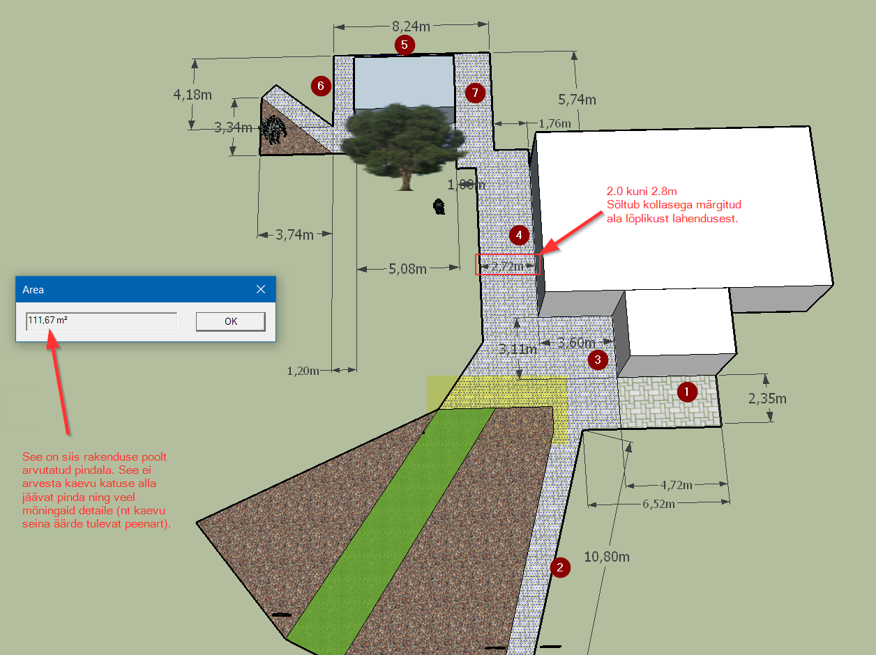 Ehitada betoonkividest sillutatud kiviteid üldpinnaga kuni 130m2. Skeem selgitustega lisatud.