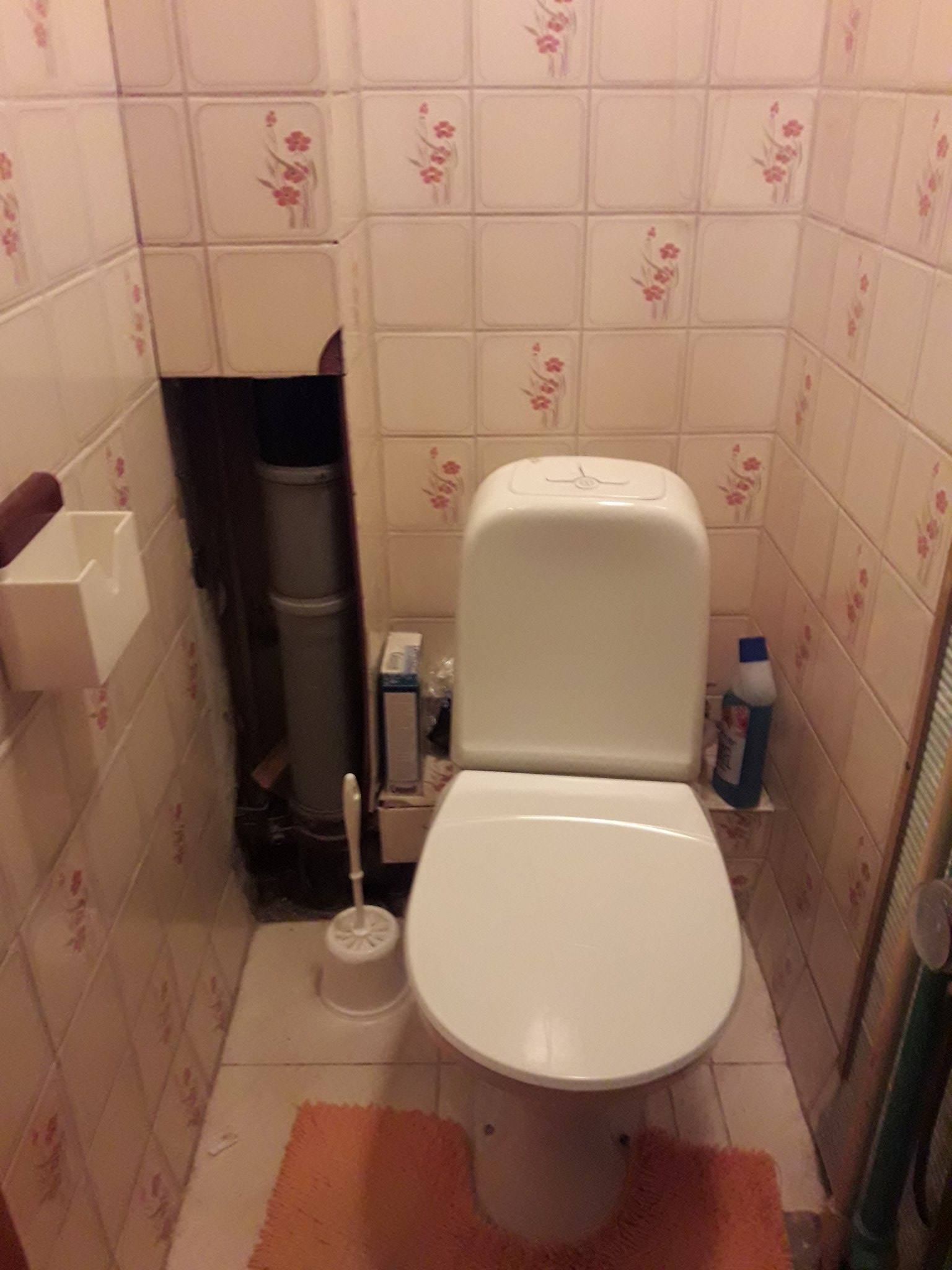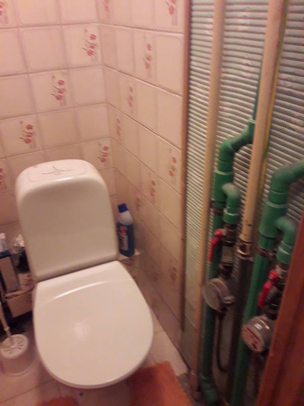WC-l on põrandapinda 0,92 x 0,8 m, ruumi kõrgus 2,5 m. Vaja oleks eemaldada keeramilised plaadid seintelt ja laest, paigaldada uued plaadid seintele, lagi värvida. Vahetada WC pott, võimalusel paigaldada uus pott tagaseinale lähemale (vt pilti). Valada uus põrand ja plaatida. Torude ümber ehitada võimalusel kapp, et oleks ligipääs veemõõtjatele. Osad veetorud on juba varasemast ühistu poolt vahetatud.