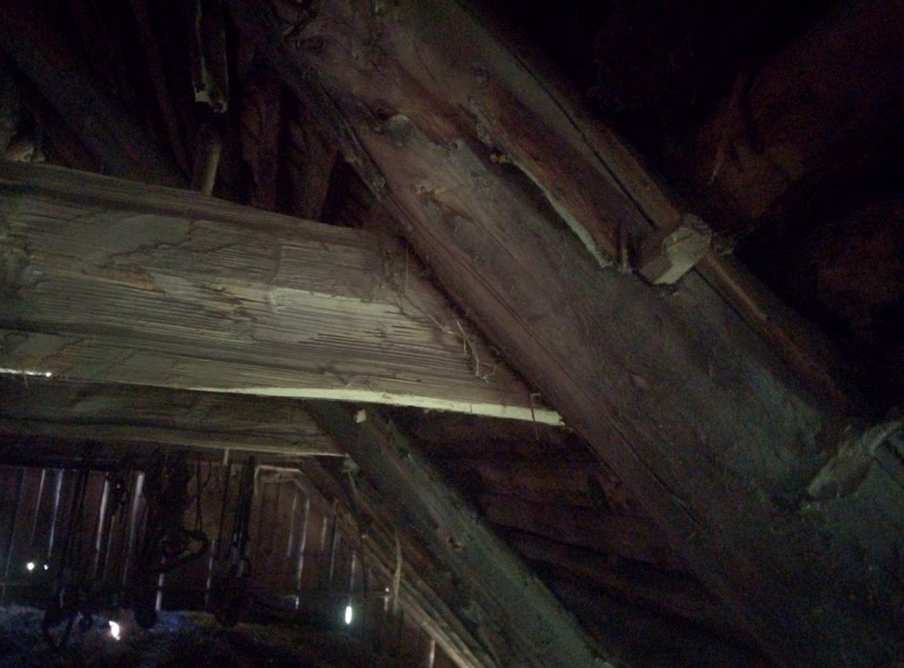 Katuse osaline rihtimine, roovise vigastuste parandus ja katkiste eterniitplaatide vahetus.
