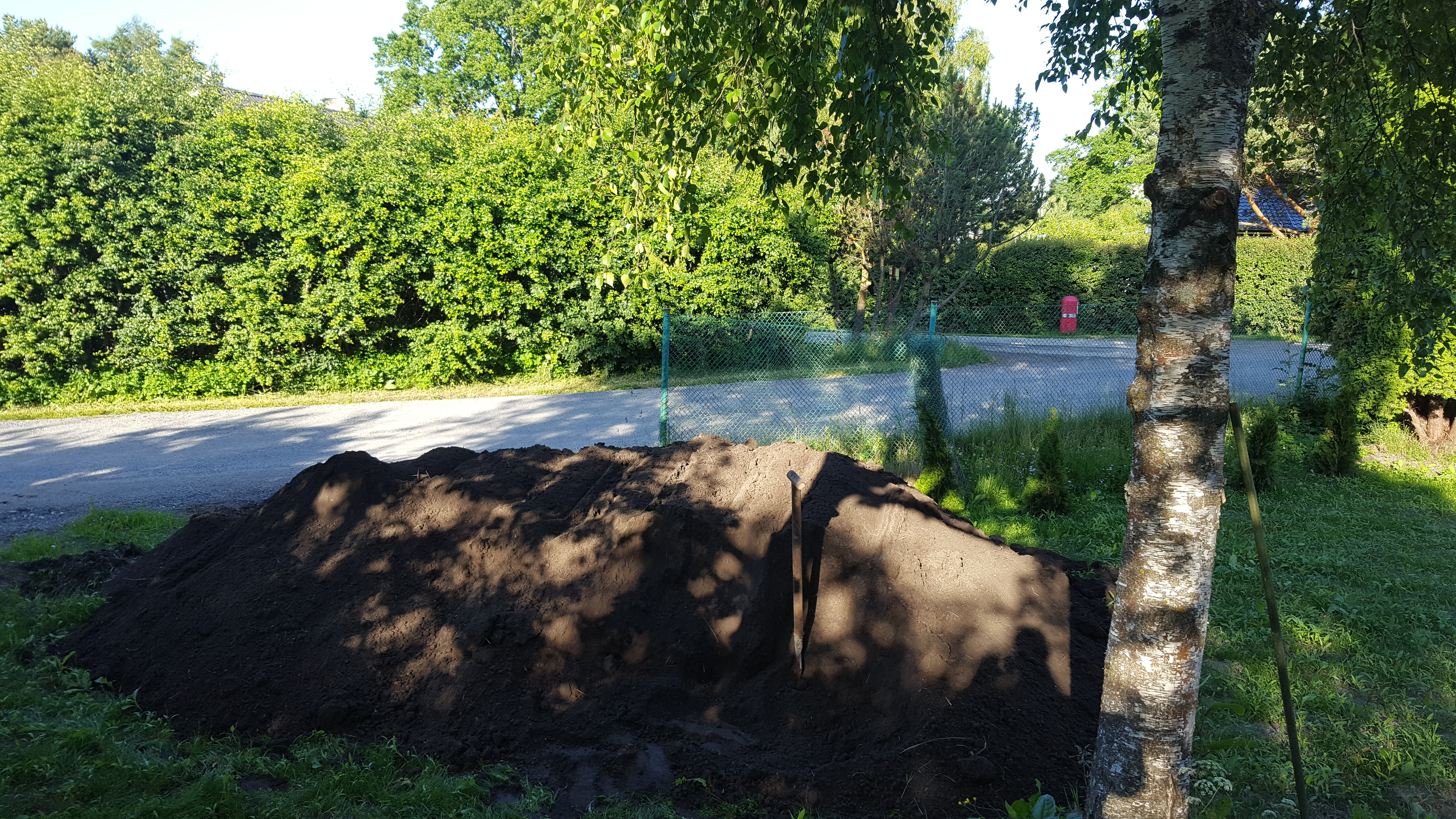 Sõelutud mulla, u 10 tonni, laiali lükkamine, muru pinnaks.