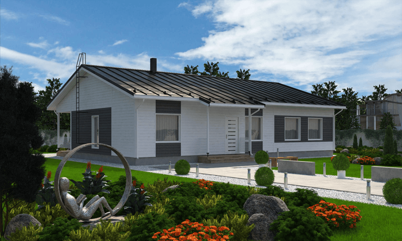 Pakkumine sisaldab eramu projekti koostamist ehitusloa taotlemiseks ja ehitusloa taotluse esitamist ehitusregistris ( kõik kooskõlastused toimuvad reeglina elektrooniliselt läbi ehitusregistri ). Projekt sisaldab järgmist: arhitektuurne osa - projekti seletuskiri, asendiplaan, vundamendi plaan, I korruse plaan, hoone vaated, katuse plaan, evakuatsiooni plaan, piirdeaia ja krundisisese haljastuse lahendus, tehnovarustuse lahendus, energiaarvutused ja energiamärgis.