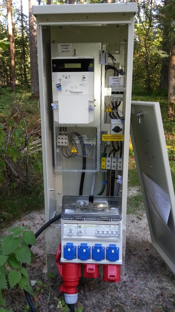 Kilbis peab olema: pea lüliti / kaitse 16A, rikkevoolu kaitse, 3 faasiline kaitse 16A, paar 1 faasilist kaitsmeid 16A, min 1 pistik 3 faasiline 400 V plus paar tava pistikuid 230 V. Kilp peab olema varastatud 20m kaabliga. Kaabli otsas pesa ja sellega omakorda kilbi küljes,et saaks igal õhtul kilp kaasa võtta. Elektrilevi liitumiskilbi juures paigaldada 3 faasiline pistiku pesa 400V et võiks kaabel koos väike kilbiga ühendada.