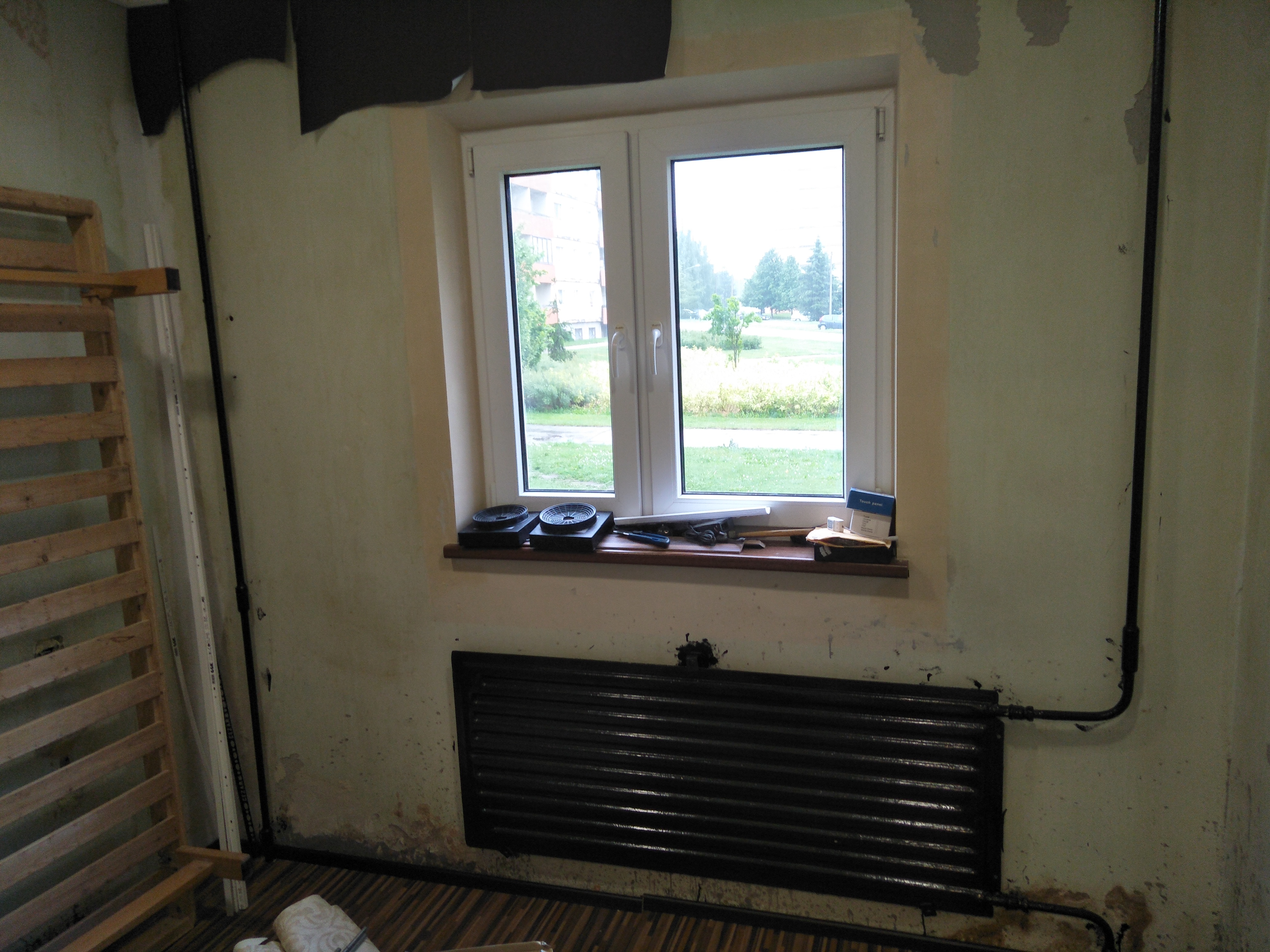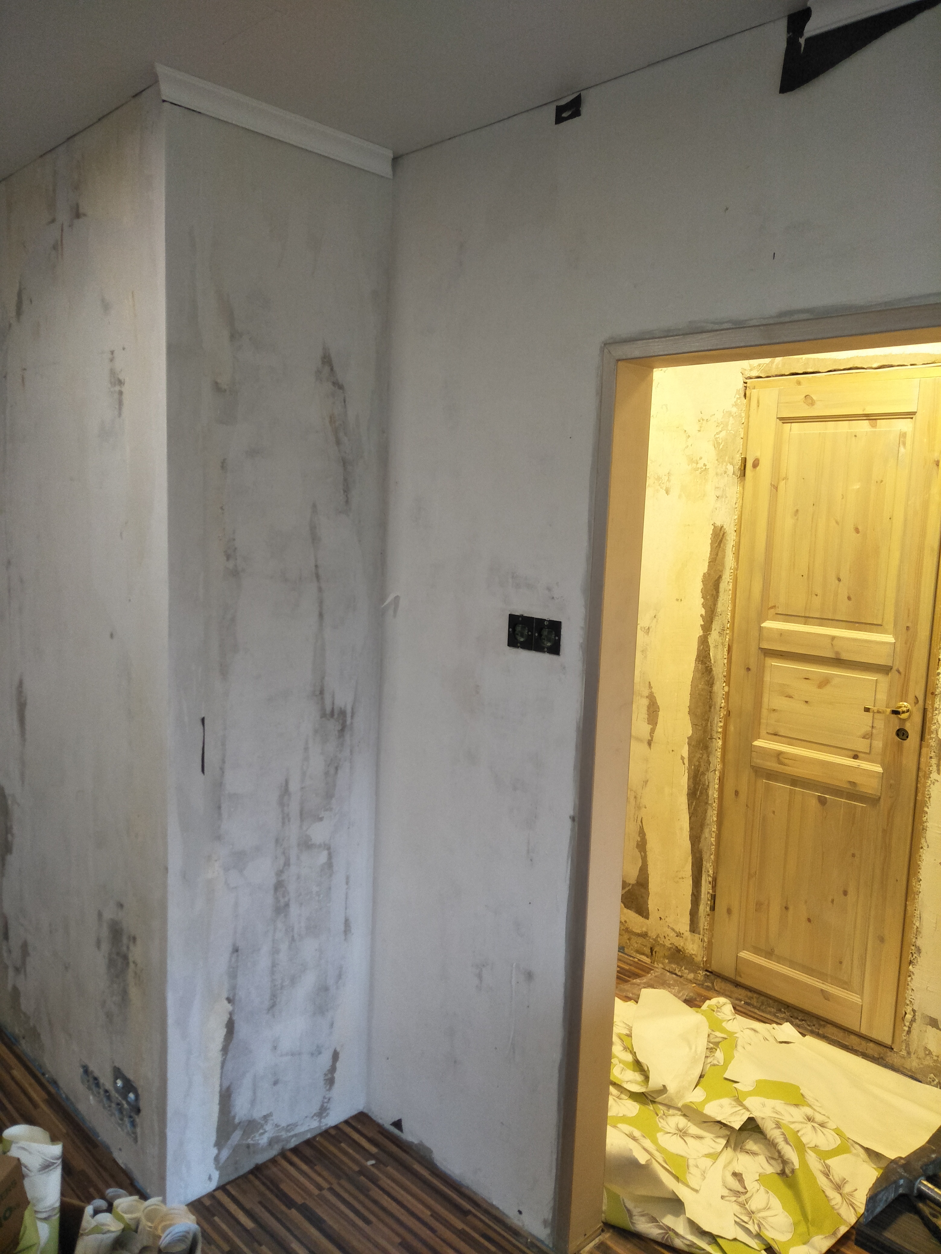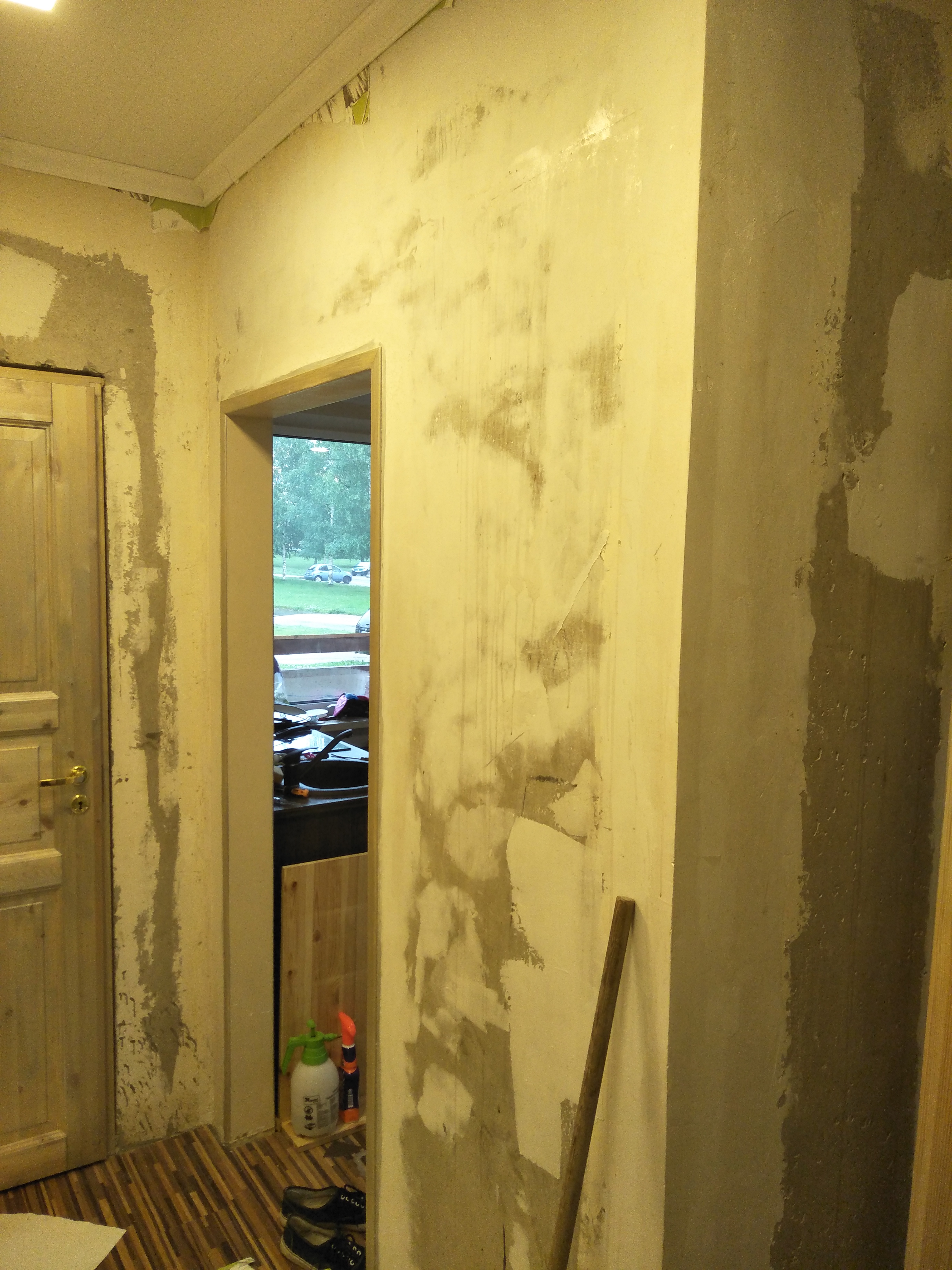 Korteri kogupind 31m2, korter asub esimesel korrusel. Seintelt on äsja eemaldatud tapeet samuti saavad eemaldatud põranda ja lae ääreliistud. Korteris on eelnevalt tehtud remont ning osa suuremaid ebatasasusi on juba pahteldatud, nurgad parandatud jne. Mõned kohad vajavad suuremat tasandamist. Piltidel seinte seisukord.