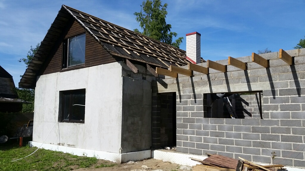 Vaja oleks eemaldada vana majaosa (vt pilte) katus kuni müürideni.