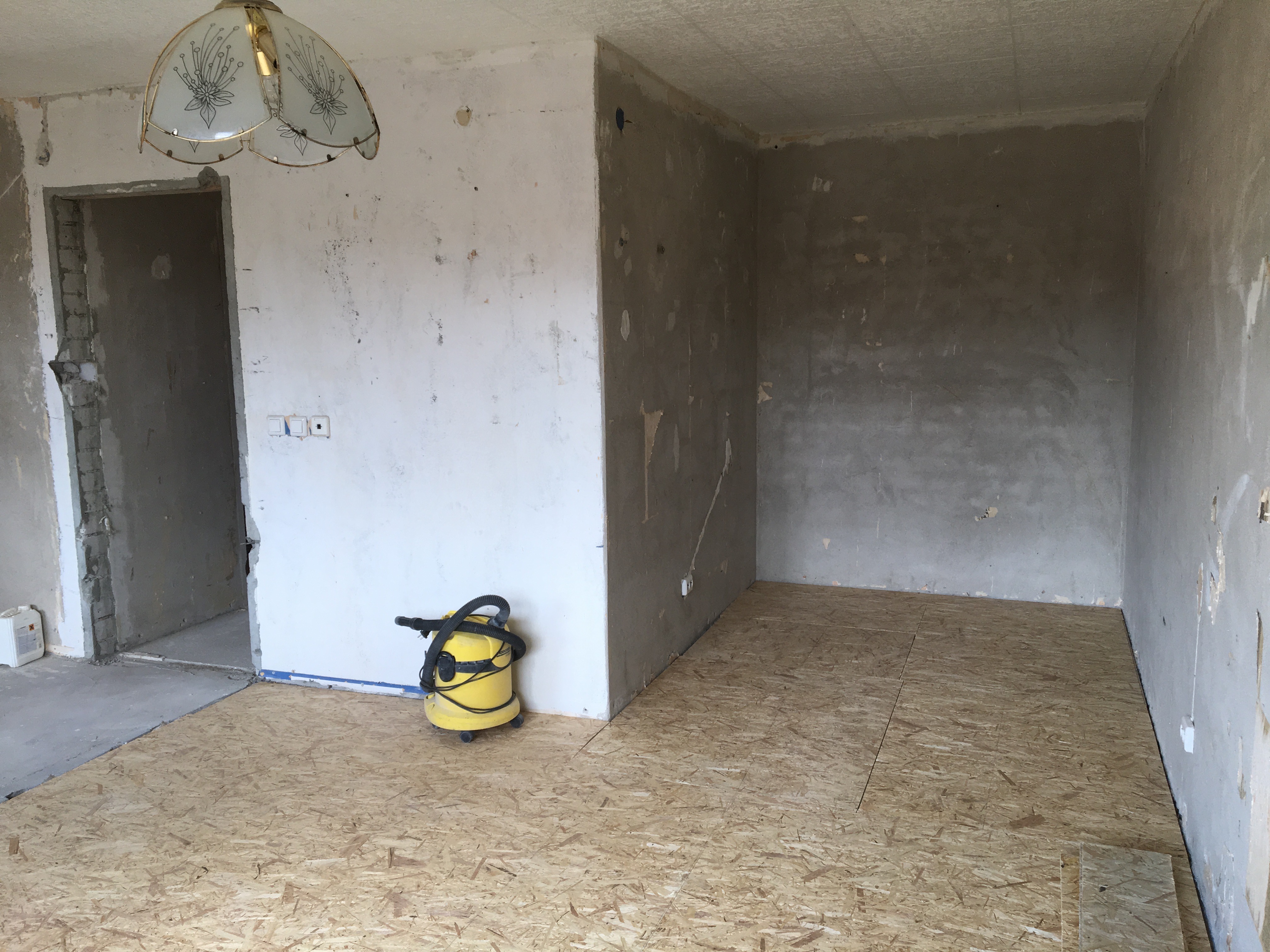 1. Kõikide seinte ja nurkade tasandamine, krohvimine ja pahteldamine , elutoa/ esiku vahelise ukseaugu viimistlemine. Aknapaled on juba korralikud.