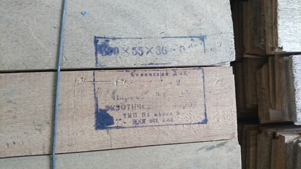 Parkett on 90ndatel Venemaal toodetud mahagon, töötlemata. Otstes ja äärtes punn, soon.