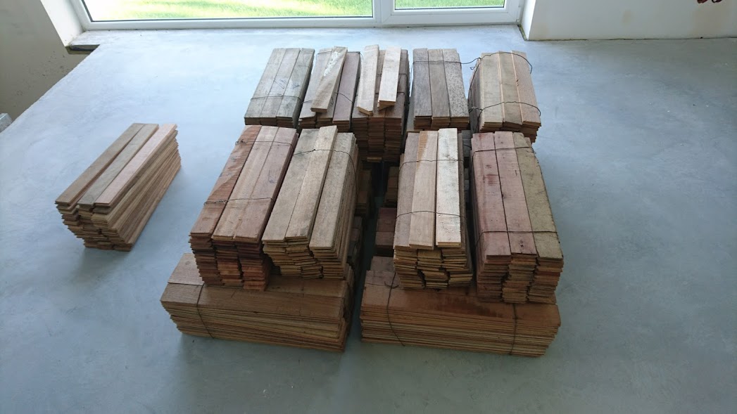 Viimistlus (pahtel, lihvimine, vuugid, õlitamine) plaanis teha ise. Vaja eelkõige inglise kalasaba parketi ladumise ja liimimise kogemusega inimest.
