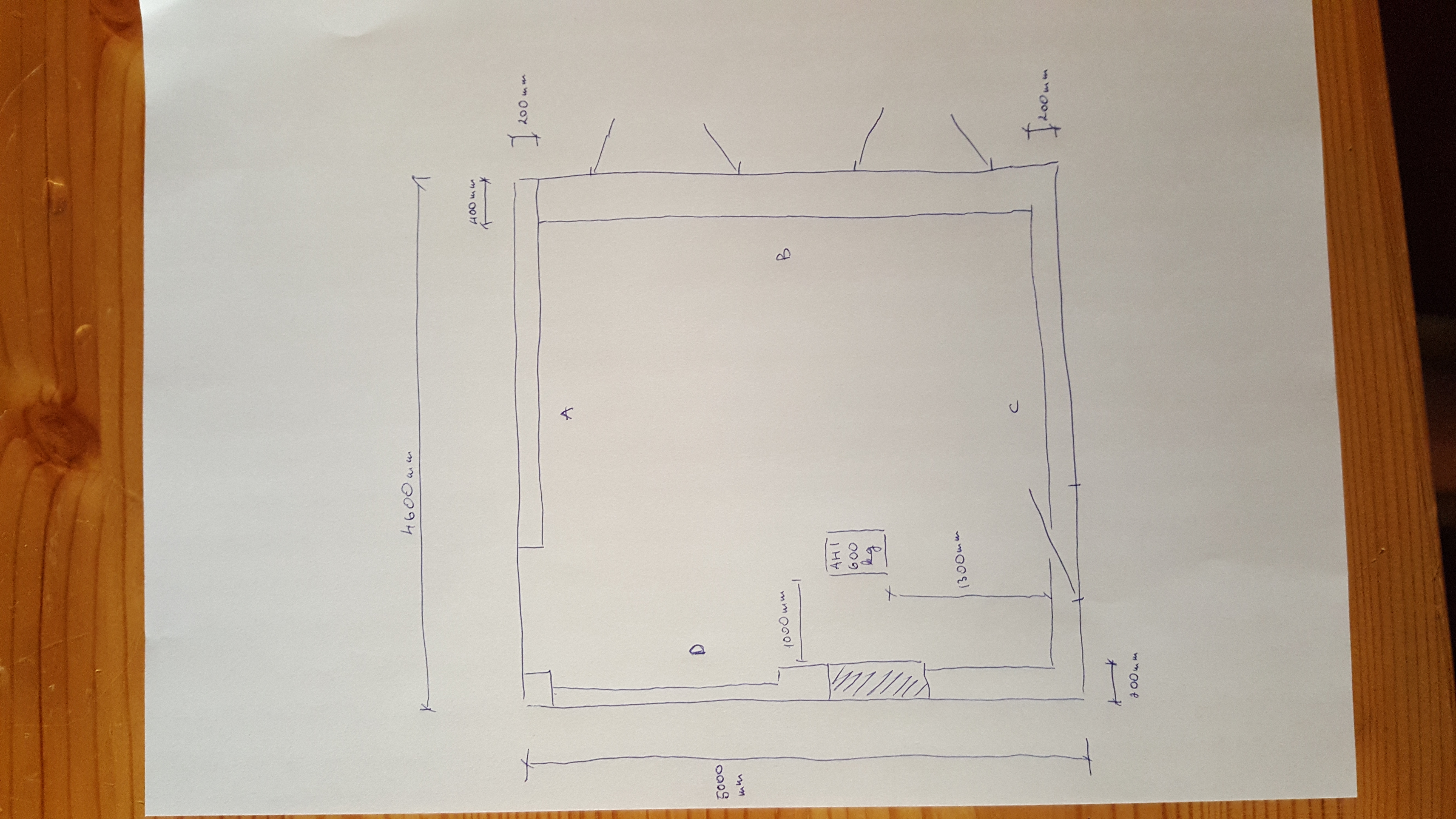 Keldrisse ei tohiks jääda tugiposte, kuid kuna tuppa saab tulema skeemil näidatud kohta ~600kg ahi, siis võib valada ahju alla (koos põranda valuga) armeeritud horisontaaltala 200mm paksusega .
