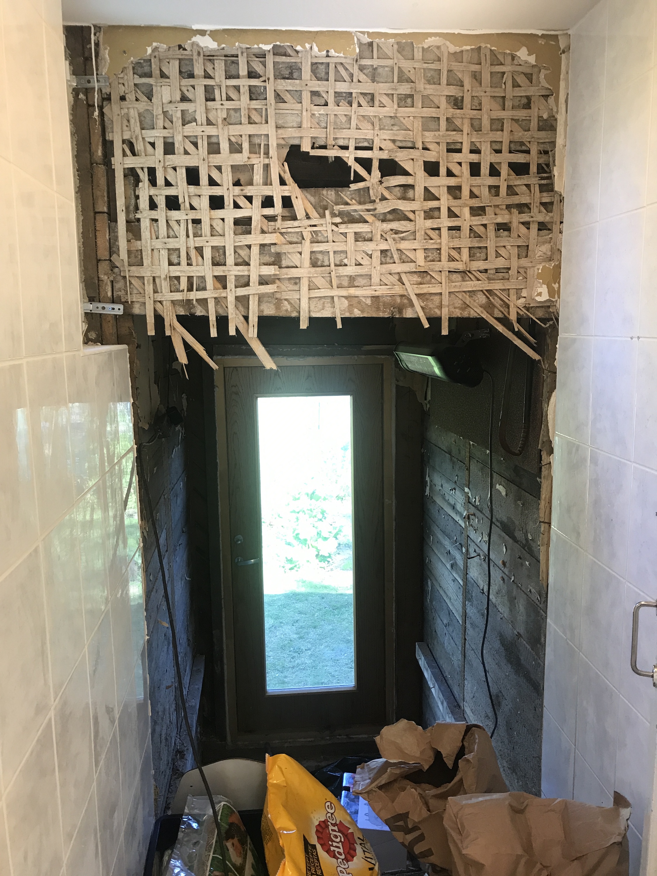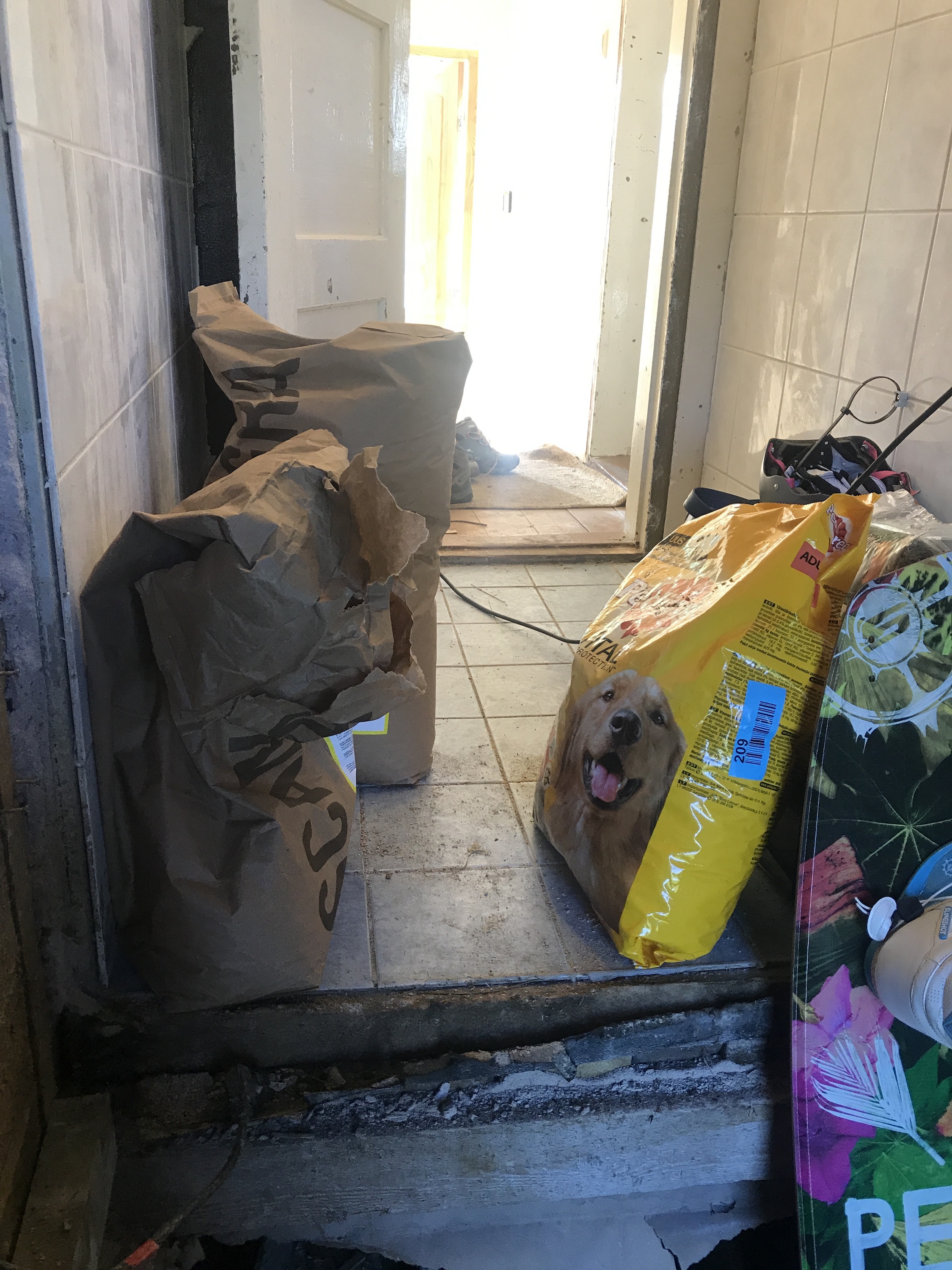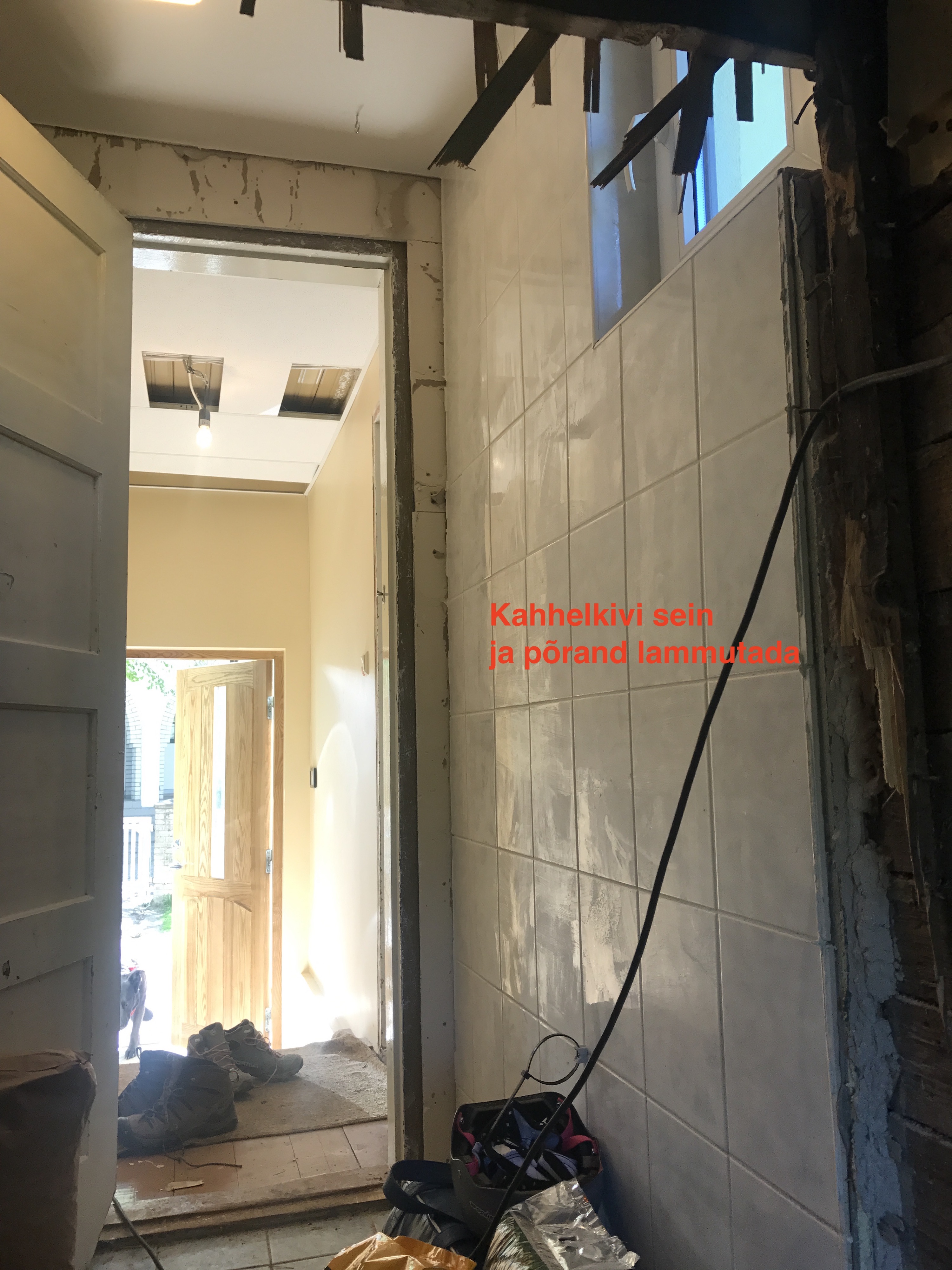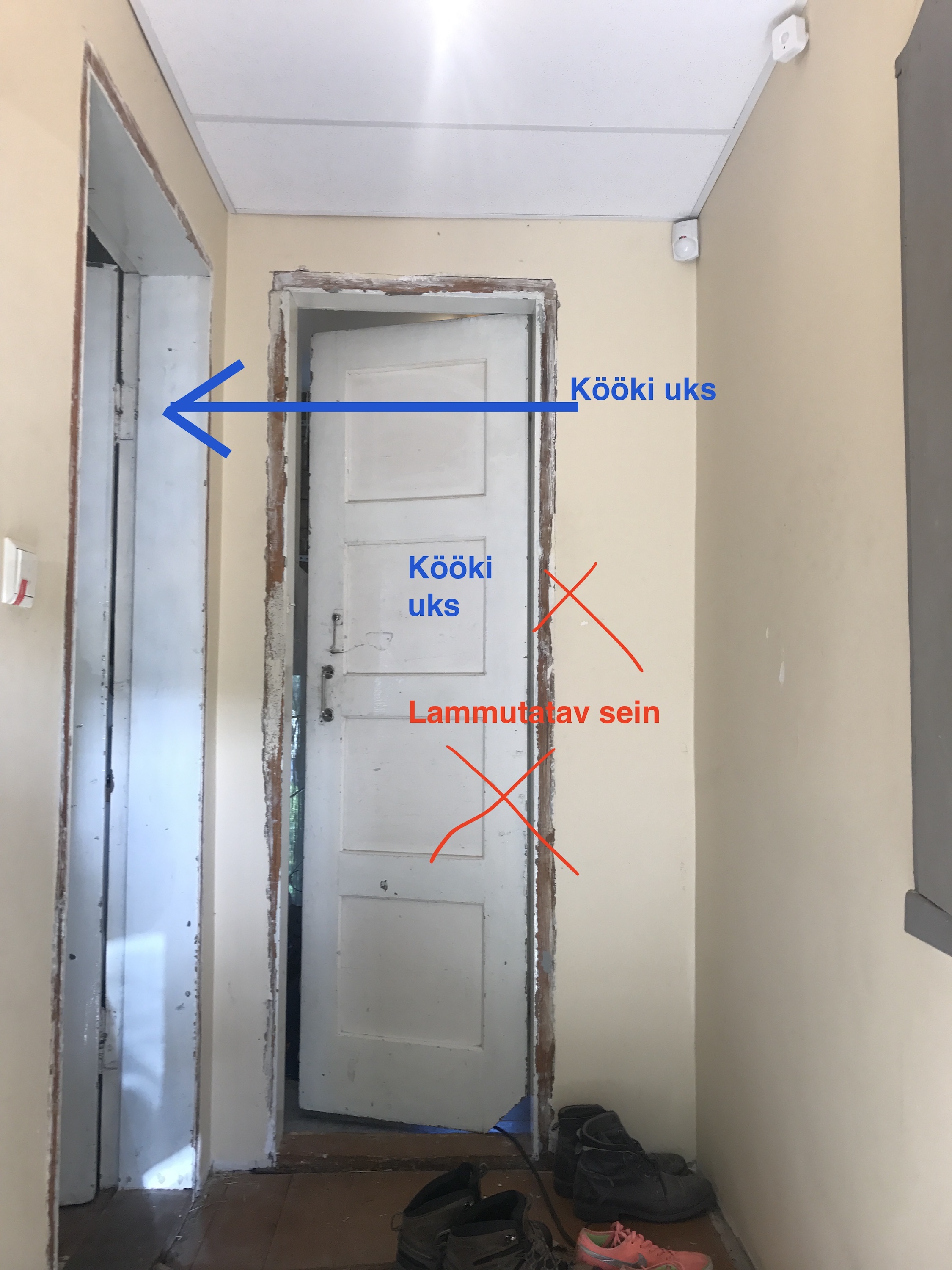 3. Ukse ja vaheseinte eemaldamine sahvri ja olemasoleva esiku vahel (joonisel punasega)