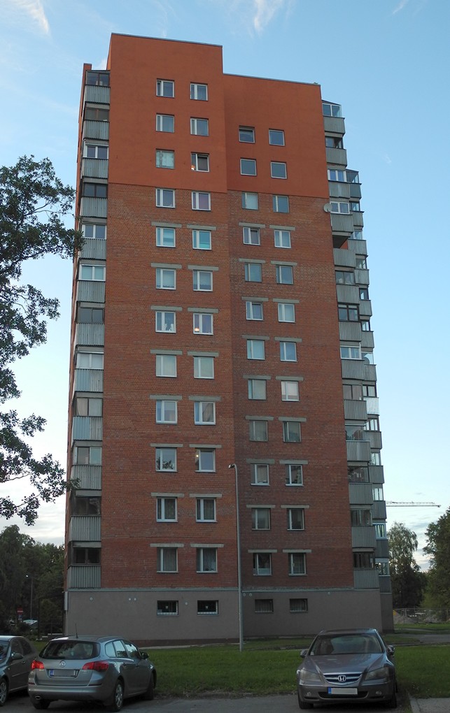 Mustamäel asuv tornelamu on 13-korruseline, seinad on punasest kärgtellisest, ülemised 2-3 korrust on juba eelnevalt krohvitud ja värvitud.
