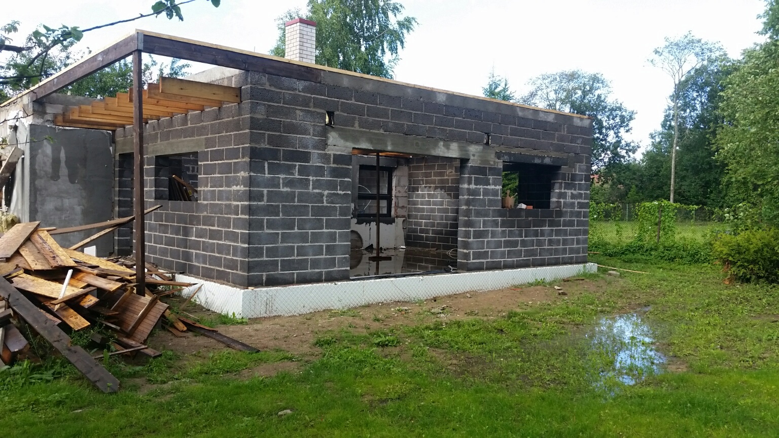 Eramu müürid on ehitatud ning müüridele valatud betoonvöö millele kinnitatud horisontaalne pruss 50x200 täis perimeetri ulatuses.