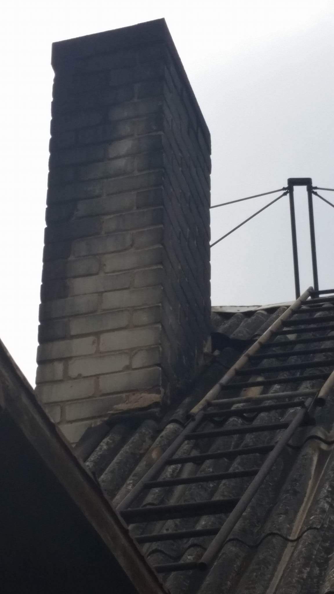 Majal 2 korstent. Üks neist pikem viltu vajunud ja tuleks u 10 rida kive lahti võtta ja uus korstnapits ehitada. Teisel paar rida vaja juurde nagu piltidelt näha. Samas on vaja ilmselt tellingut ja kuhu telling toetuks see osa katusest on eterniidist.