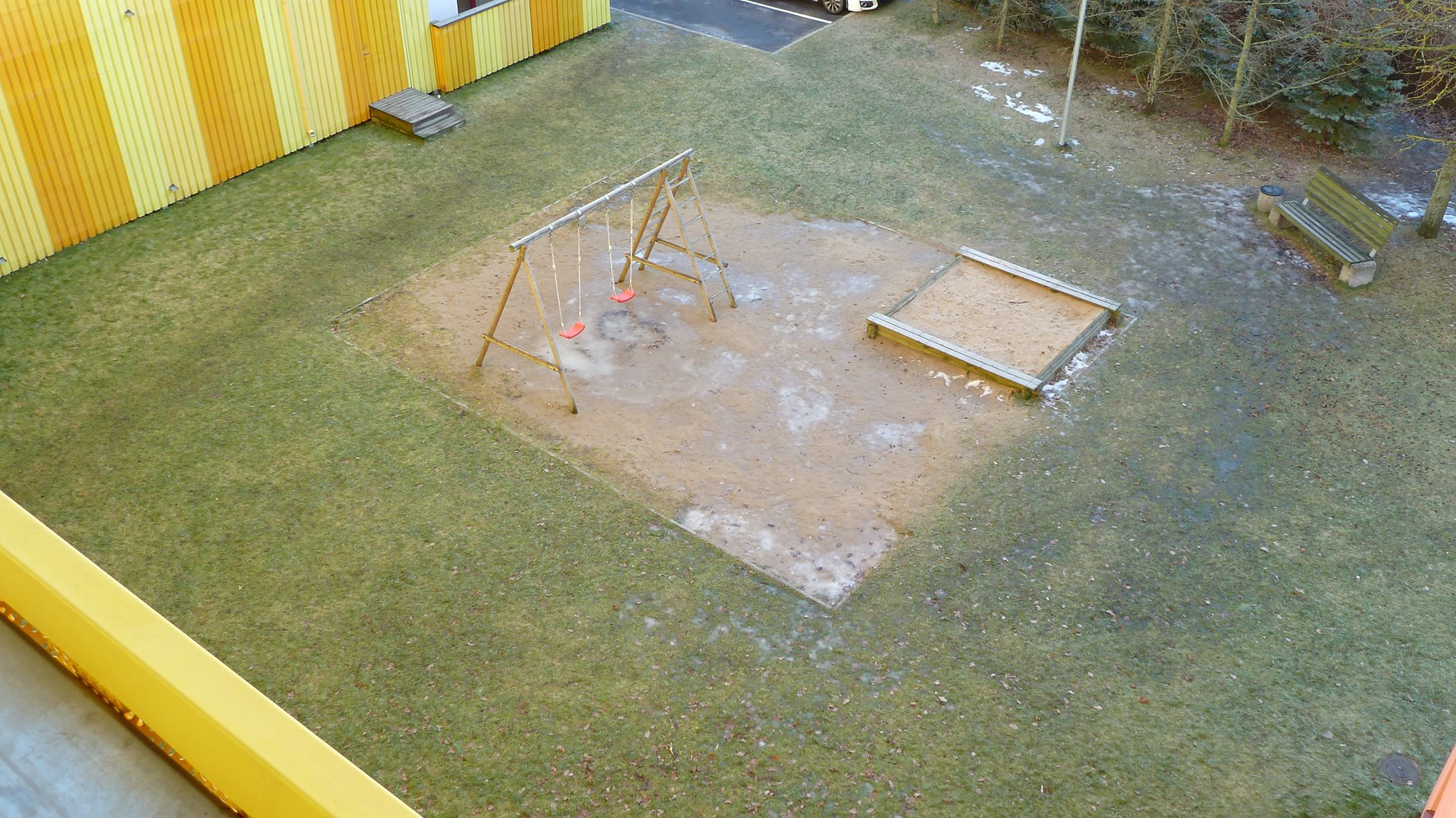 Renoveerimist vajaks laste mänguväljak, mille mõõdud on 9 x 8 m.