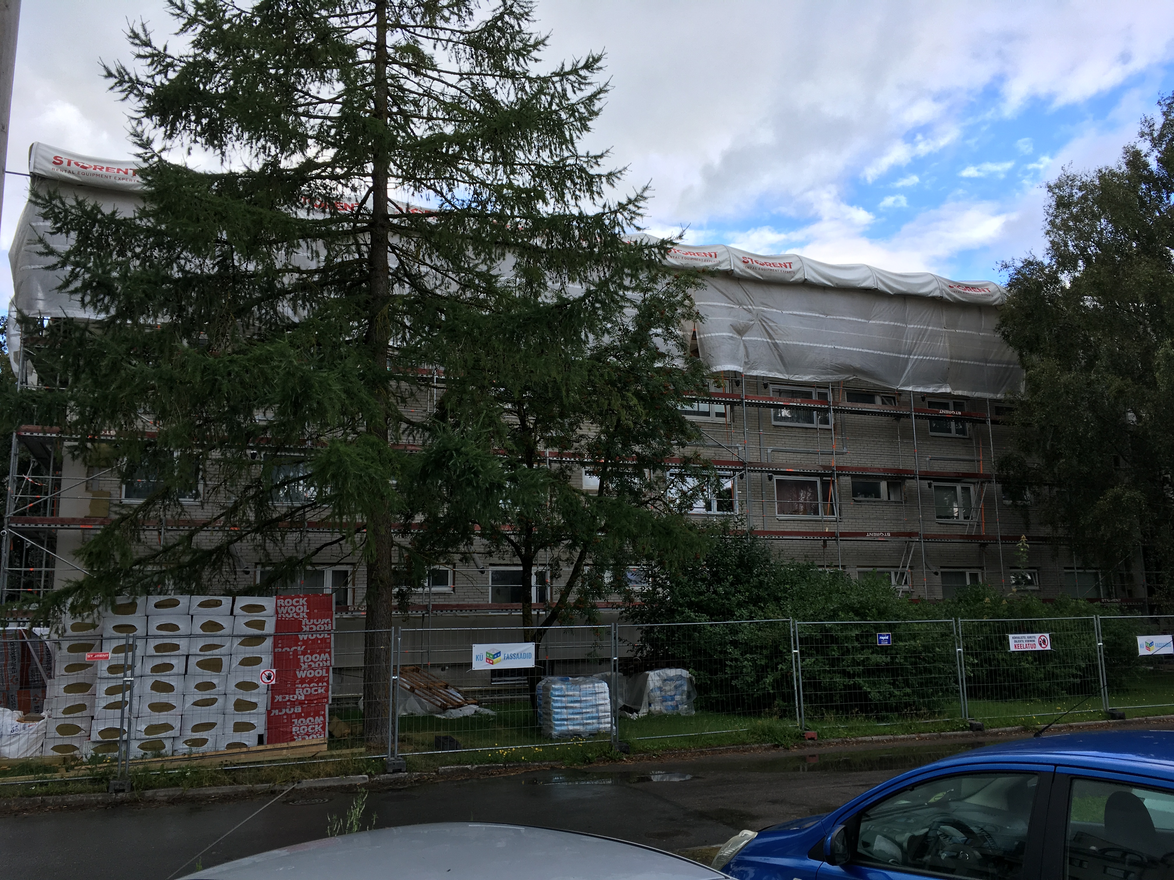 Kolmekordse korterelamu ühe pikiseina soojustamine Rockwool kivivillaga.