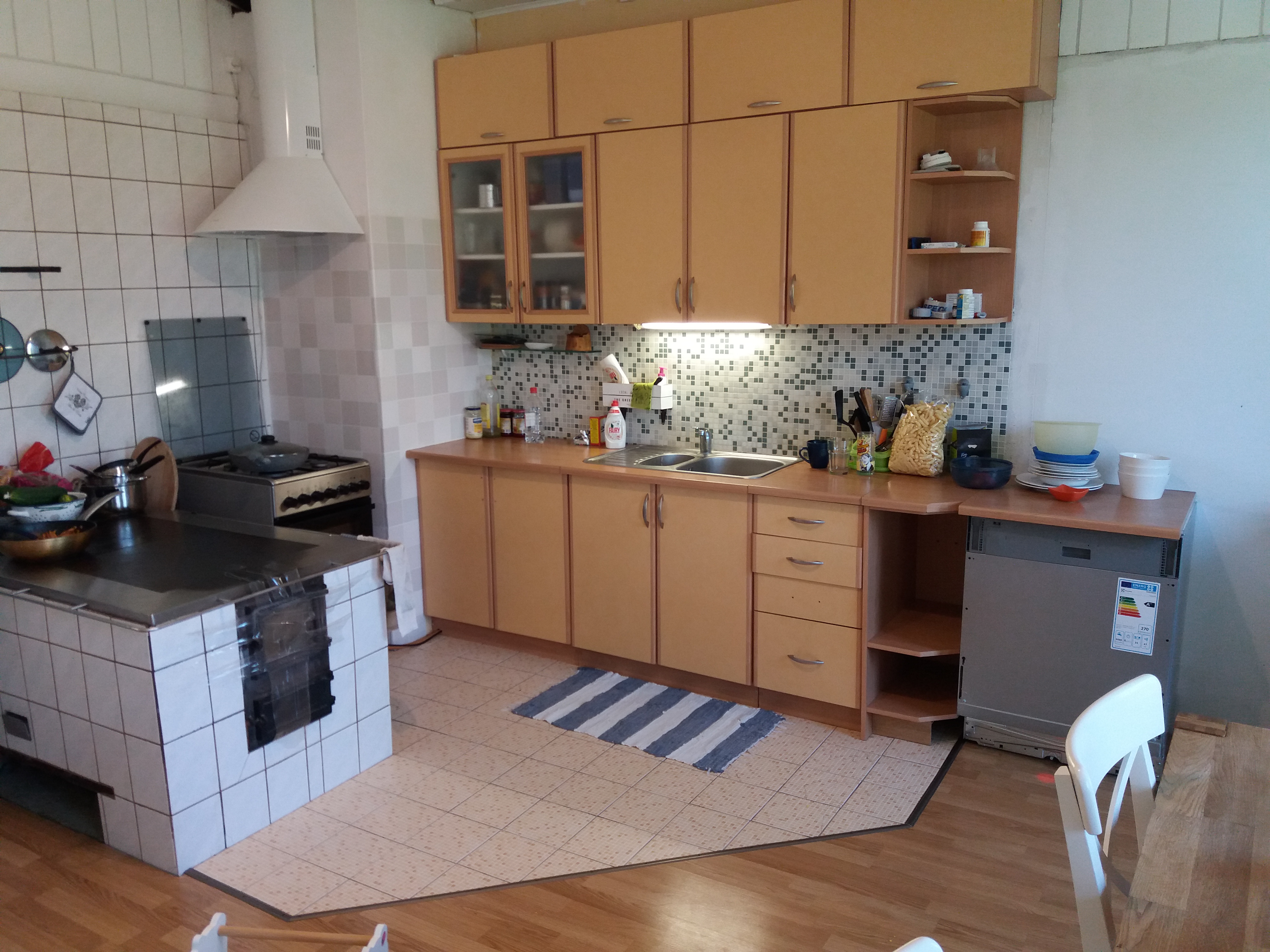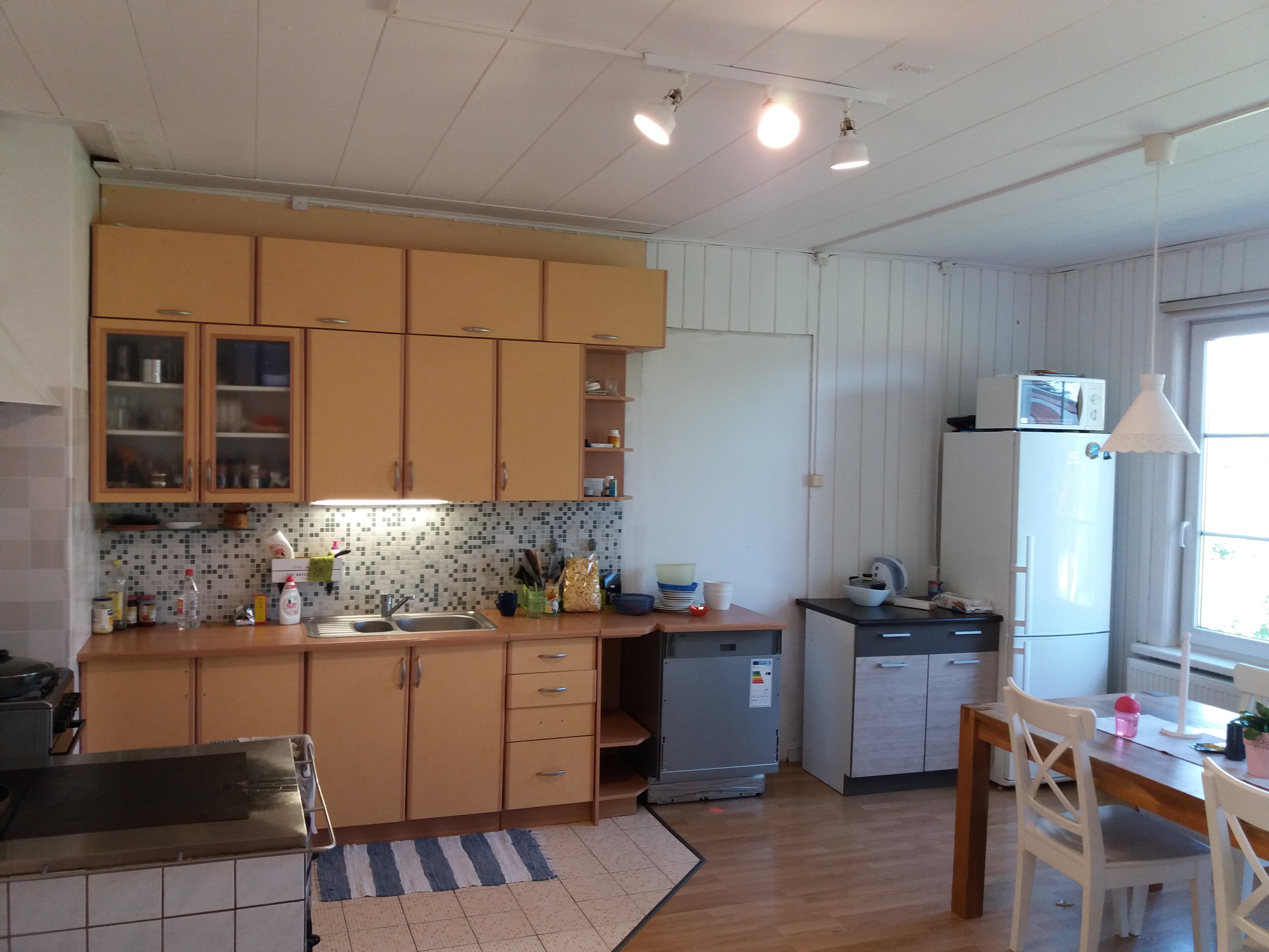 Köögis vajalik ühe seina, 12 ruutu, sirgeks ajamine saepuruplaadiga näiteks, et paigaldada köögimööbel. Seina viimistlus valge värviga, töötasapinna taguse plaatimine. Välja lõhkuda kuskil 2-3 ruutu põrandaplaate, paigaldada uus laminaatparkett (25 ruutu).