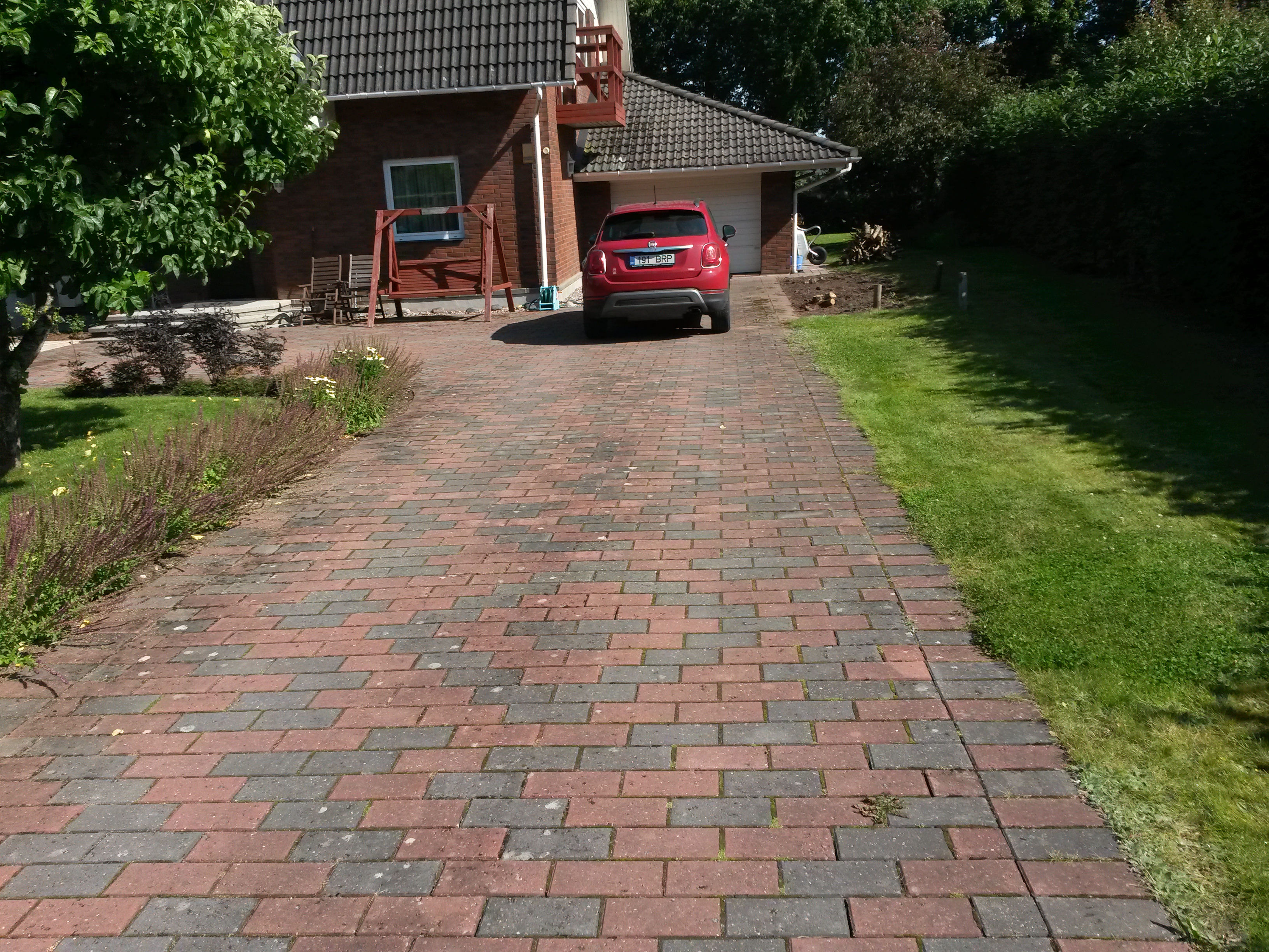 Vana kivi puhastamine ja ladustamine, uue põhja tõmbamine, tihendamine, tagasi ladumine liivatamine ja tihendamine. Äärekivi 8€/m. |