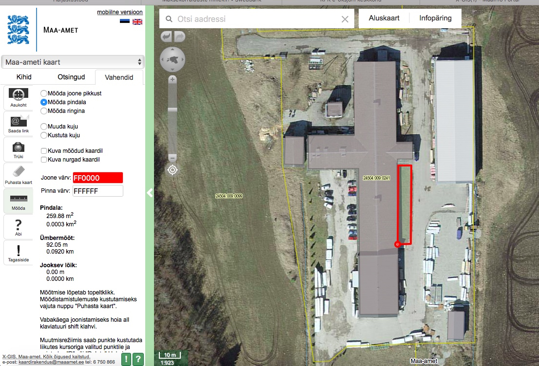 1500m2 (ettevalmistusena on tehtud pinnase äravedu, täitmine jämeda killuga). Vaja tasandada ja ilmselt tihendada peenema killuga. Ettevalmistuseks PVC halli paigalduseks. Asfaltkatte paksus ja tugevus peab olema piisav 10t tõstuki manööverdamiseks.