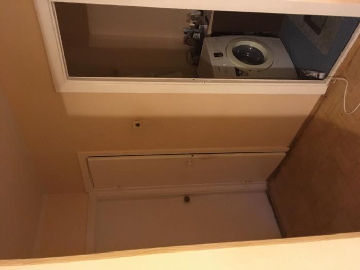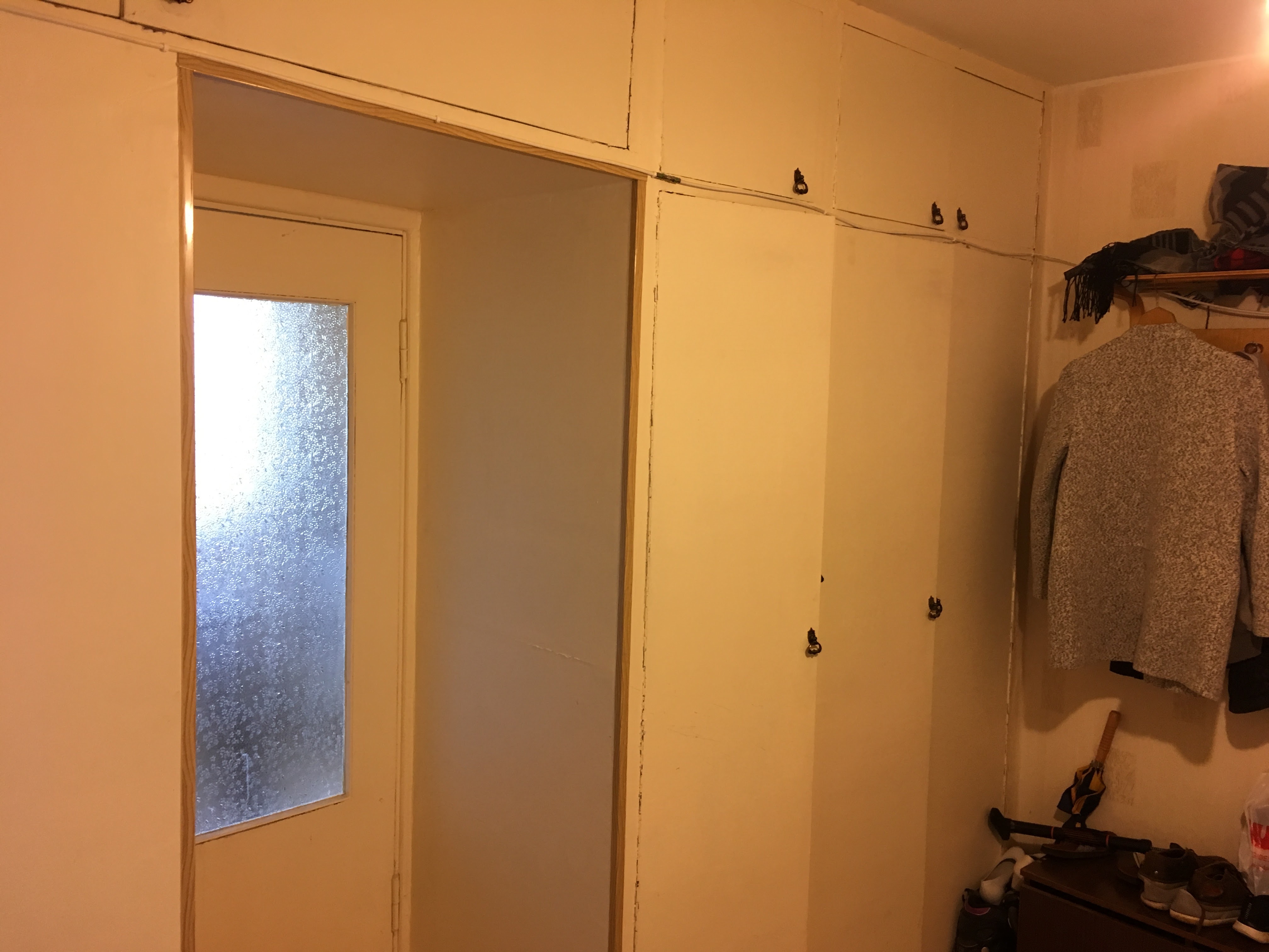 Esikus on vanad sisseehitatud kapid, mida sooviks eemaldada ja elutubade uksed vahetada. Põrand on kaetud parketiga ja seinad osaliselt tapeeditud.