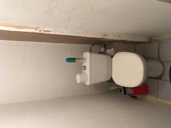 Wc on hetkel samuti plaaditud põrand ja värvitud seinad. Wc poti taga on vineeriga peidetud torud, mida sooviks meelsasti paremini peita seinaga (kuid võtta arvesse et tuleb tagada ligipääs torudele). Lahendused seinasisese wc potiga on eelistatud.