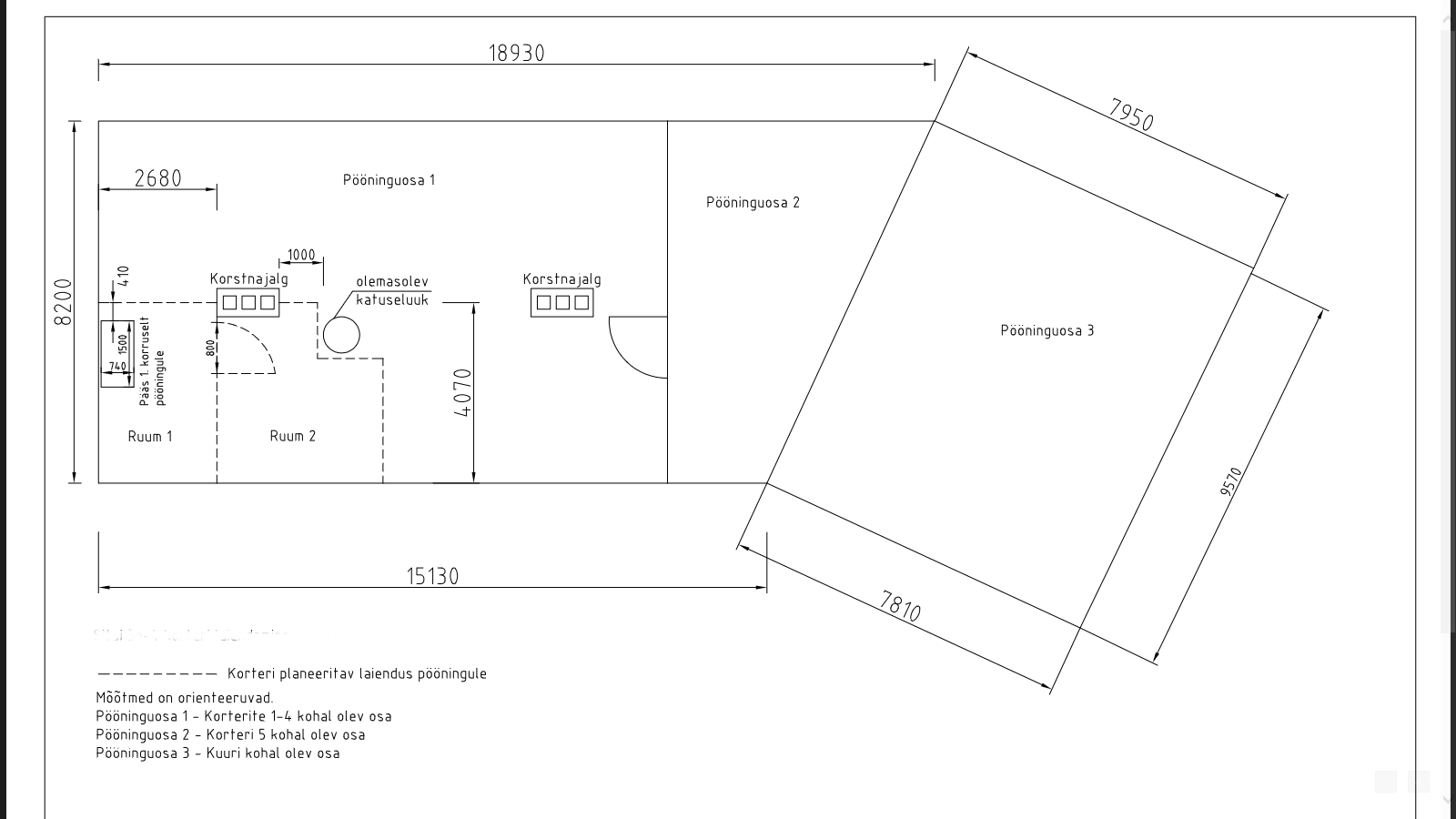 1) olemasoleva krundi ja hoone mõõdistus (on olemas tellija poolt);