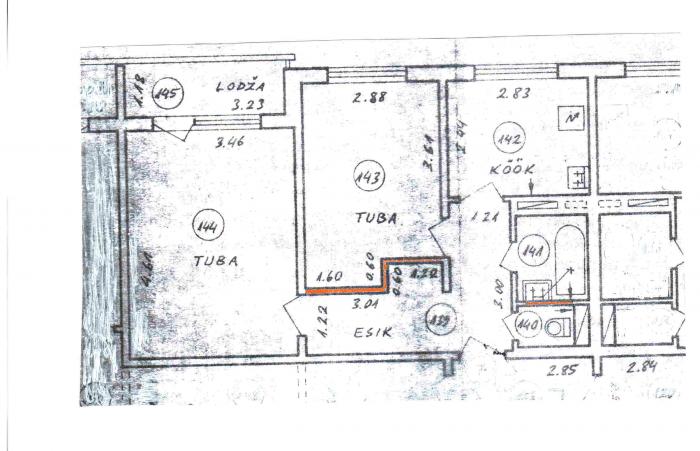 Köök (joonisel nr.142 2.55x2.86 kõrgus 2.60m)