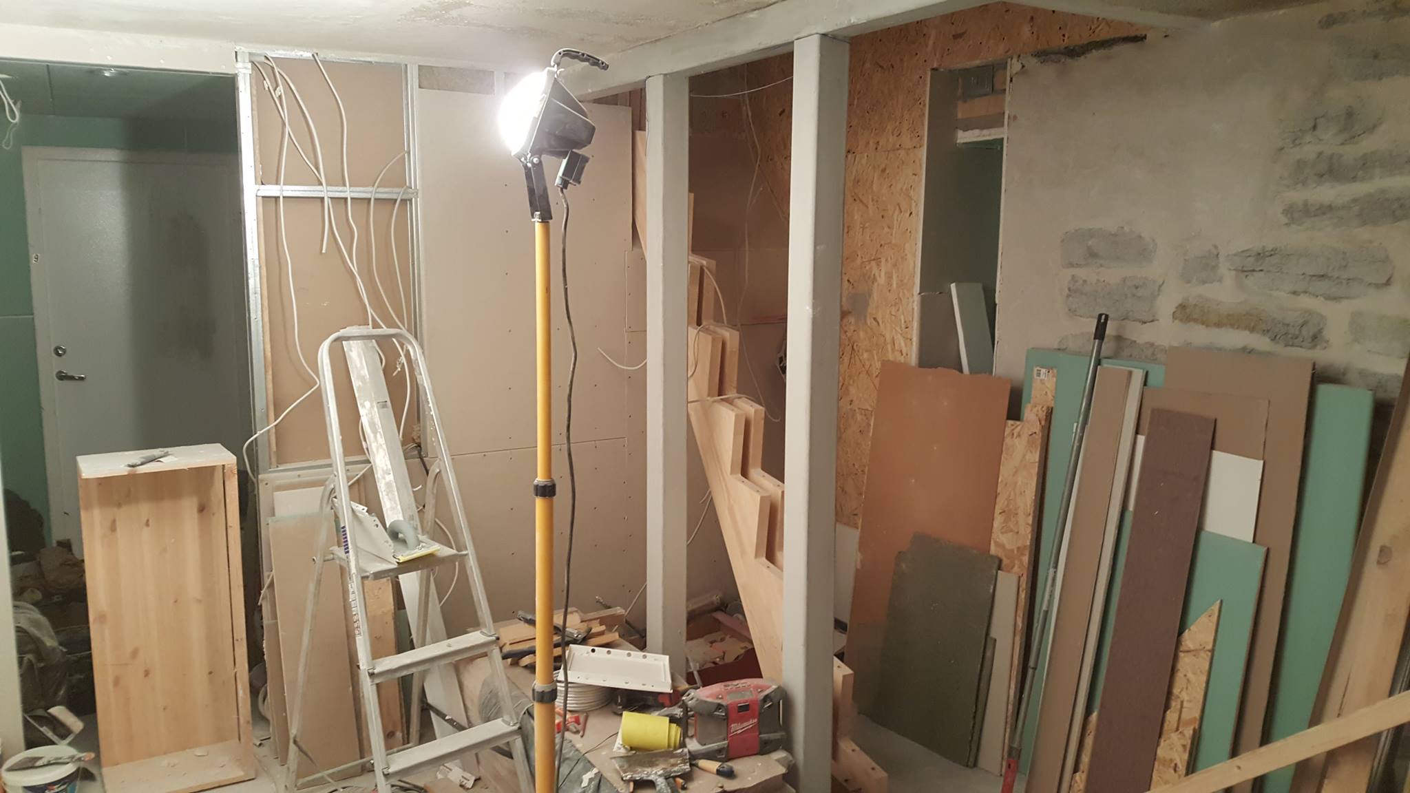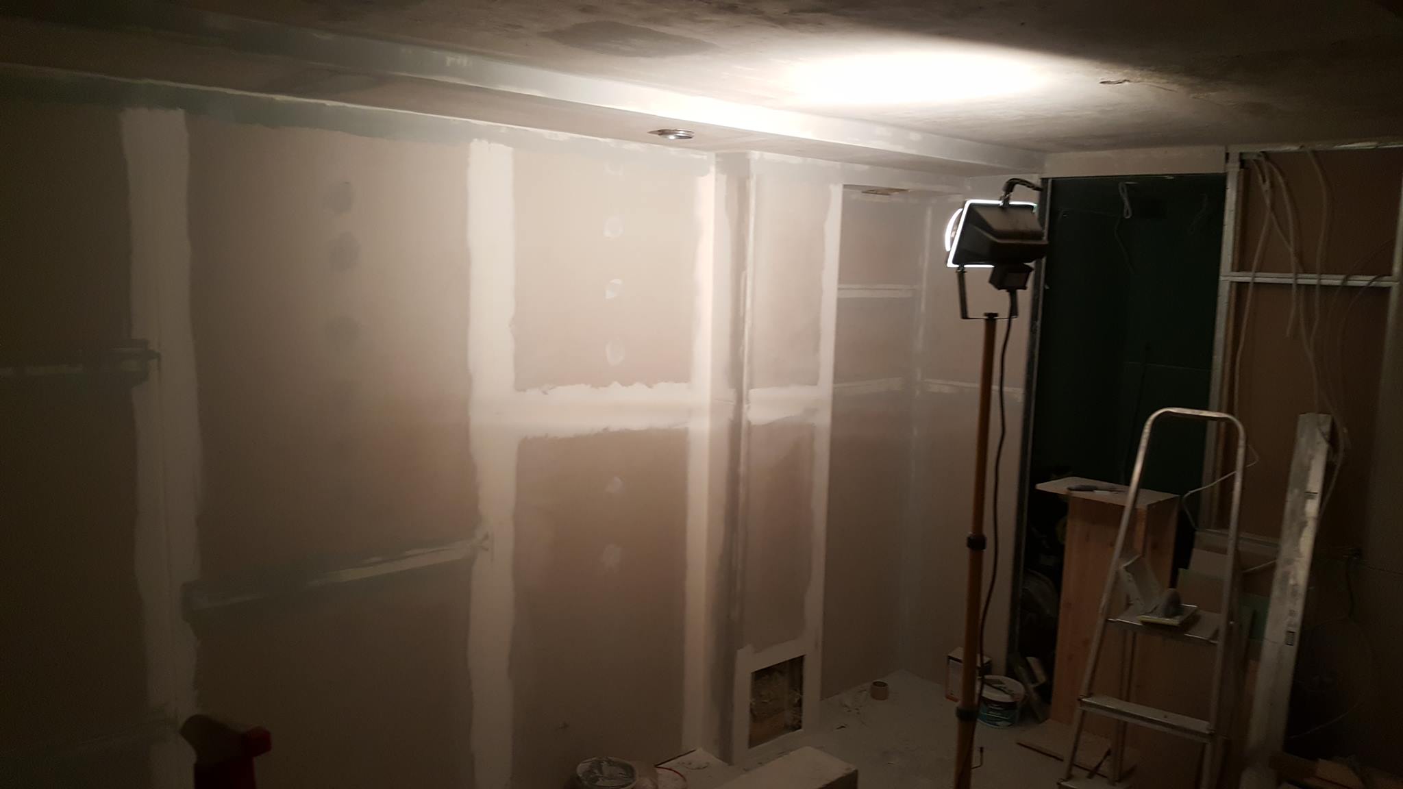 Seinad ja laed: Hüdoisolatsioon, Pahteldamine, Lihvimine, Kruntimine, Värvimine, Osaliselt plaatimine