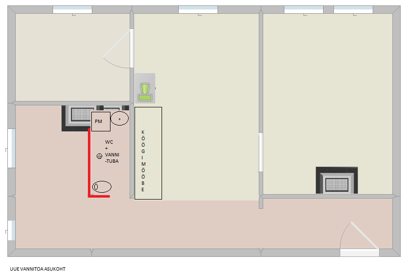 Vannituba+WC ehitatakse endise köögi alale. Boiler on juba paigaldatud vannitoa alla kuiva keldrisse.