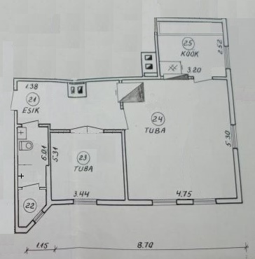 Mõlemaid osapooli rahuldava tulemuse puhul vajab renoveerimist ka kõrval asuv ruum (344 cm x 531 cm) ning köök (320 cm x 252 cm).