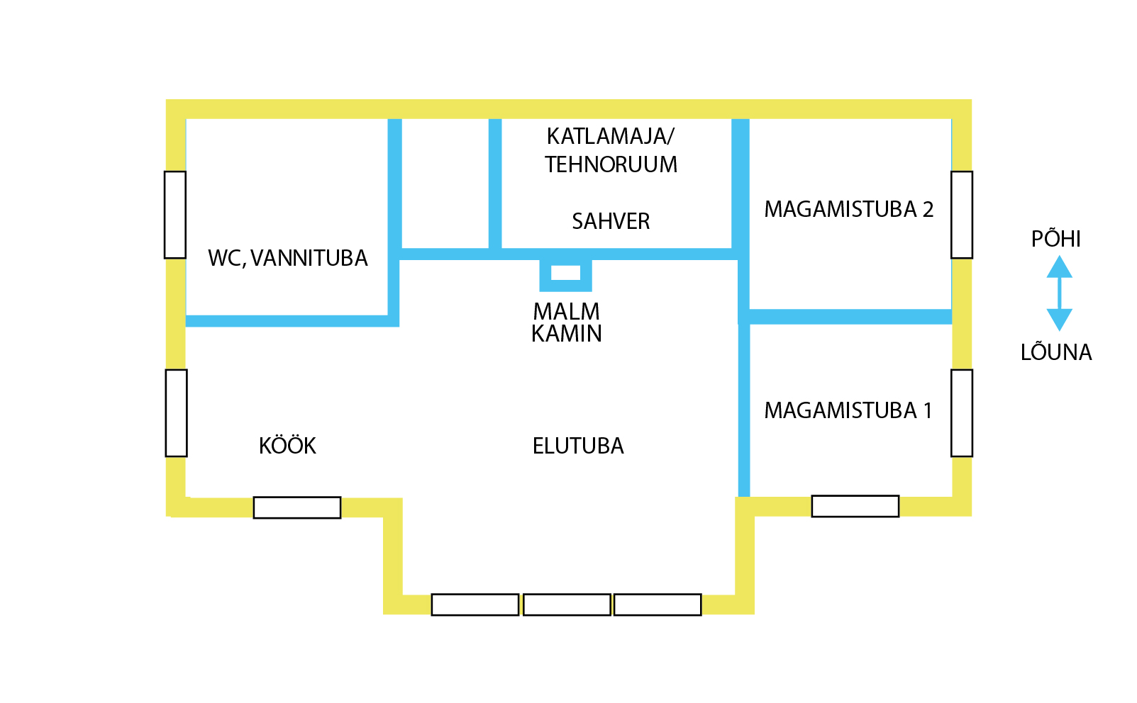 Majja tuleb puidul/tahke kütte keskküttesüsteem vesi-põrandaküttega, seega vaja ruumi nn tehnoruumi, kuhu saaks ka mahutada ka pesumasina, kuivati.