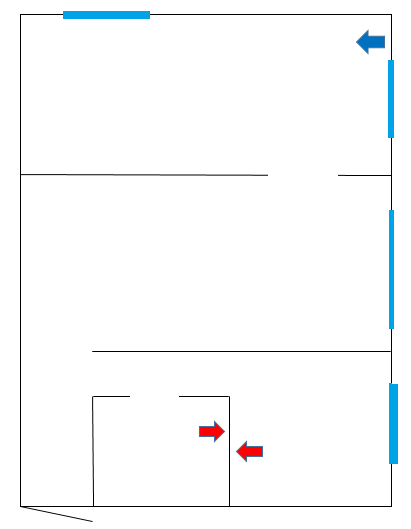 Korter 44m2, paneelmaja (seinapaksus ~250mm), 1. korrus