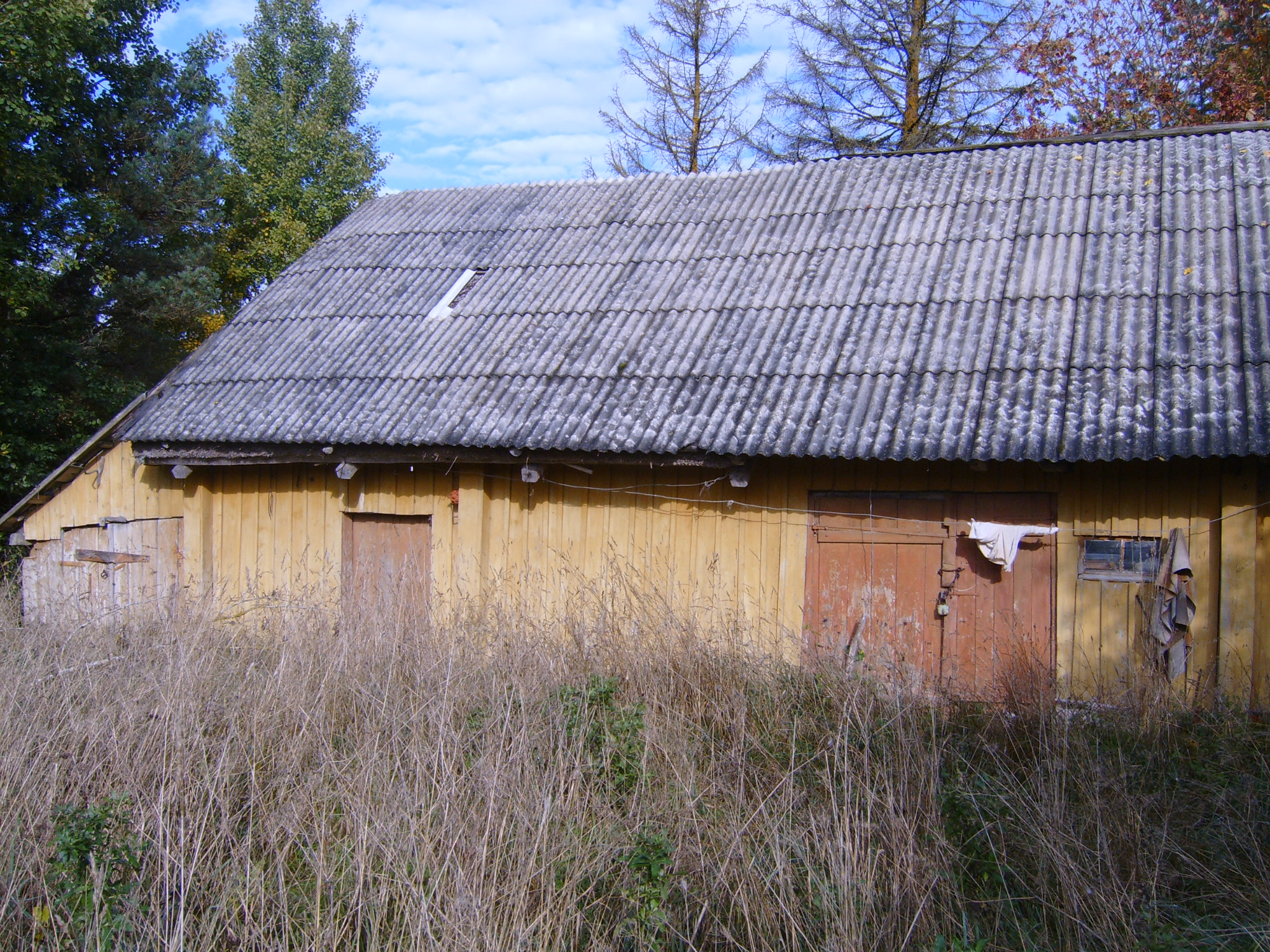 Ükekordne puitmaja eterniit katusega, laius 6m, pikkus n 22m, kõrgus 6m. Vundament jääb alles.