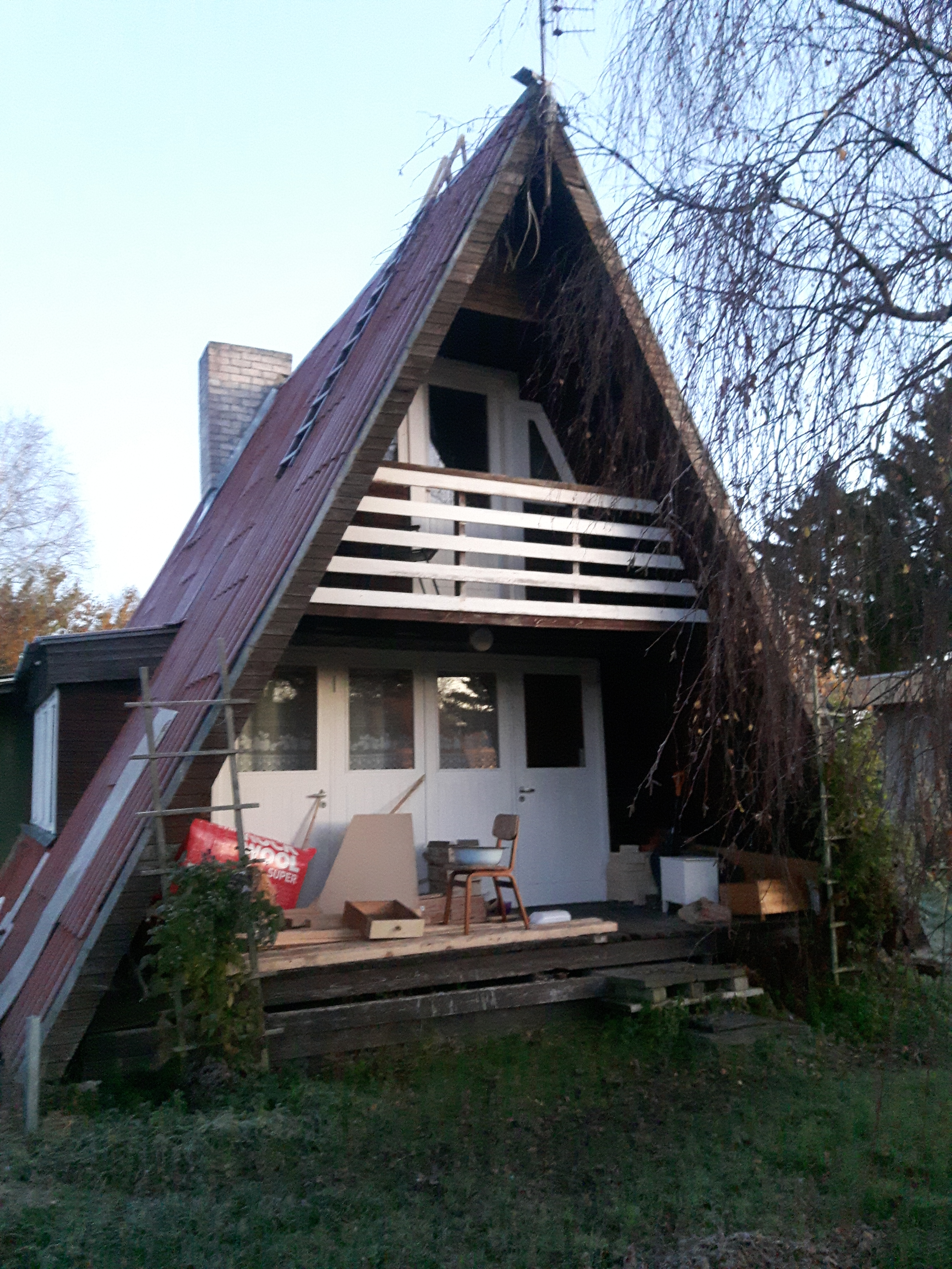 Maja teisel pool tuleb ehitada uus välissein terrassi nö lõppu, see ära soojustada ja hetkel vana välissein maha võtta ja selle asemel uus ehitada (et moodustuks uue ja vana välisseina vahele panipaik). Samuti paigaldada uued aknad uuele välisseinale. Kuna senisest terrassist moodustub põrand tuppa, siis tuleb see üles võtta ja alt soojustada, vundament on lintvundament. Soojustamist ilmselt teha alla liivakiht, selle peale kruusakiht ja selle peale 20cm penoplasti, mille peale uus põrand (kas otse penole või valada õhuke kiht põrandasegu, selle üle võib mõelda, kuidas on parem).