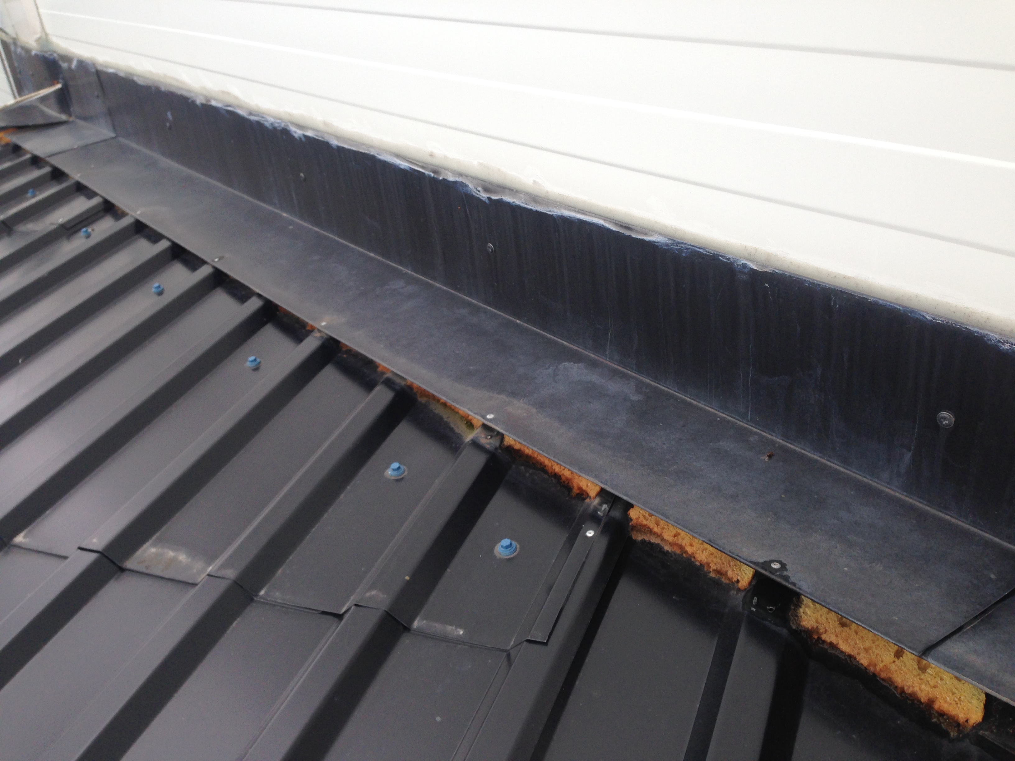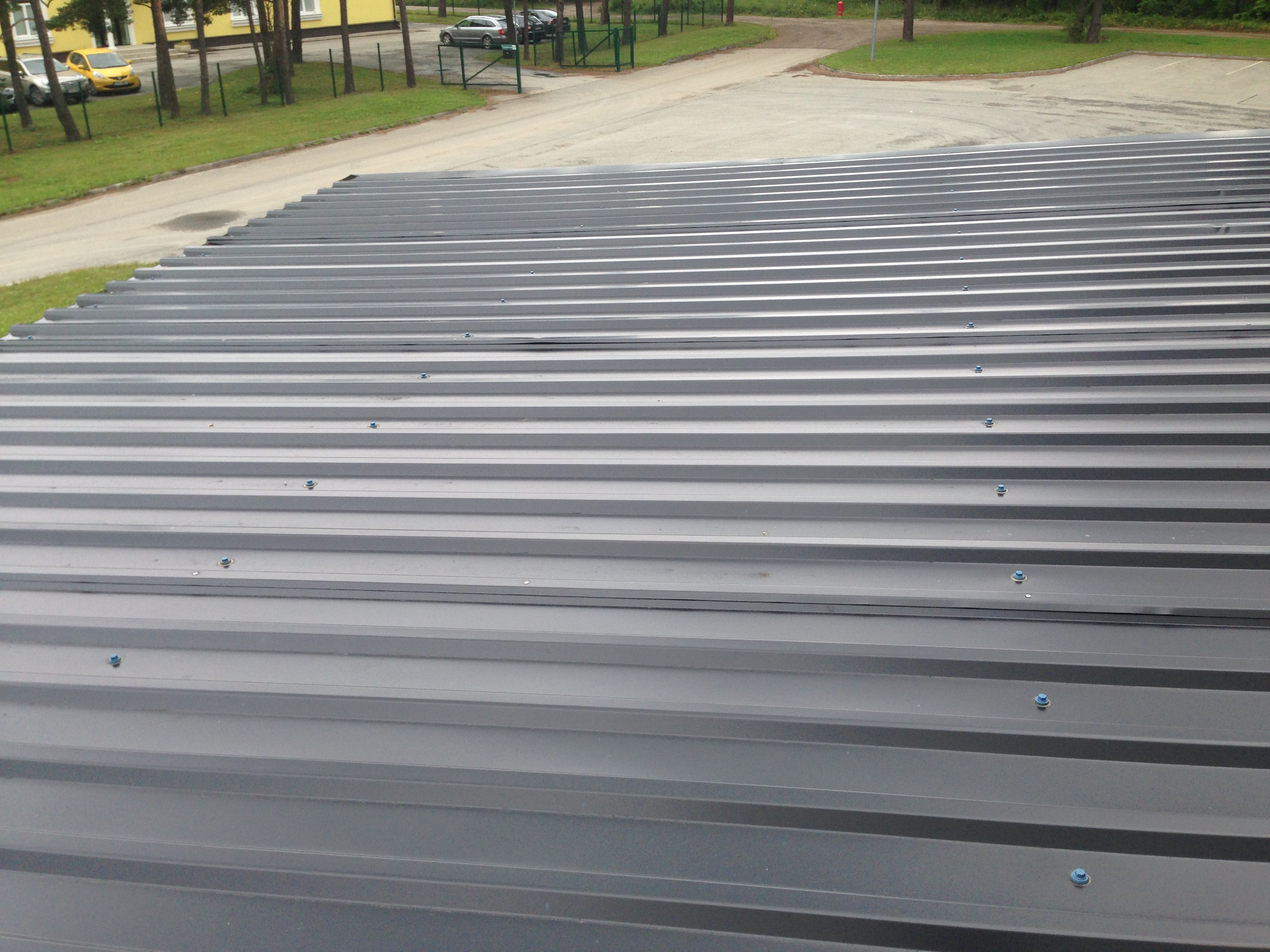 1. Probleem on laadimisala katusega, millel on olematu kalle ja trapetsprofiilpleki liitekohtadest (ka ülekatte jooksud pm täis pikkuses) ja nurgaplekkidest laseb vett läbi.