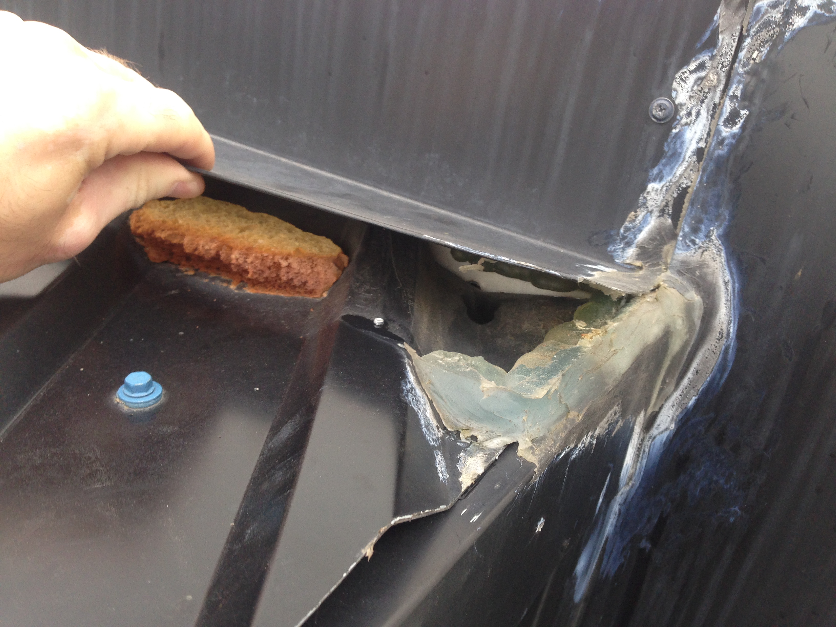 2. Laadimisala seinasid katev trapetsprofiil on omal ajal üksteise külge kinni needitud, aja jooksul on tuuled ja temperatuurikõikumised needid läbi hammustanud. Vaja siis uuesti neetida tugevama neediga.