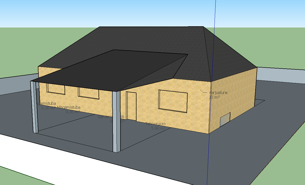 Ma sooviksin pakkumist majakarbile. Kahjuks projekti veel ei ole, aga lisan kirjale kaks pilti, kuidas ta peaks välja nägema, ning tubade paigutus ka, sealt saate kätte siseseinte arvu. Maja suurus on 125m2 väljaarvatud varjualune. Varjualune kahele autole ca 33 m2.