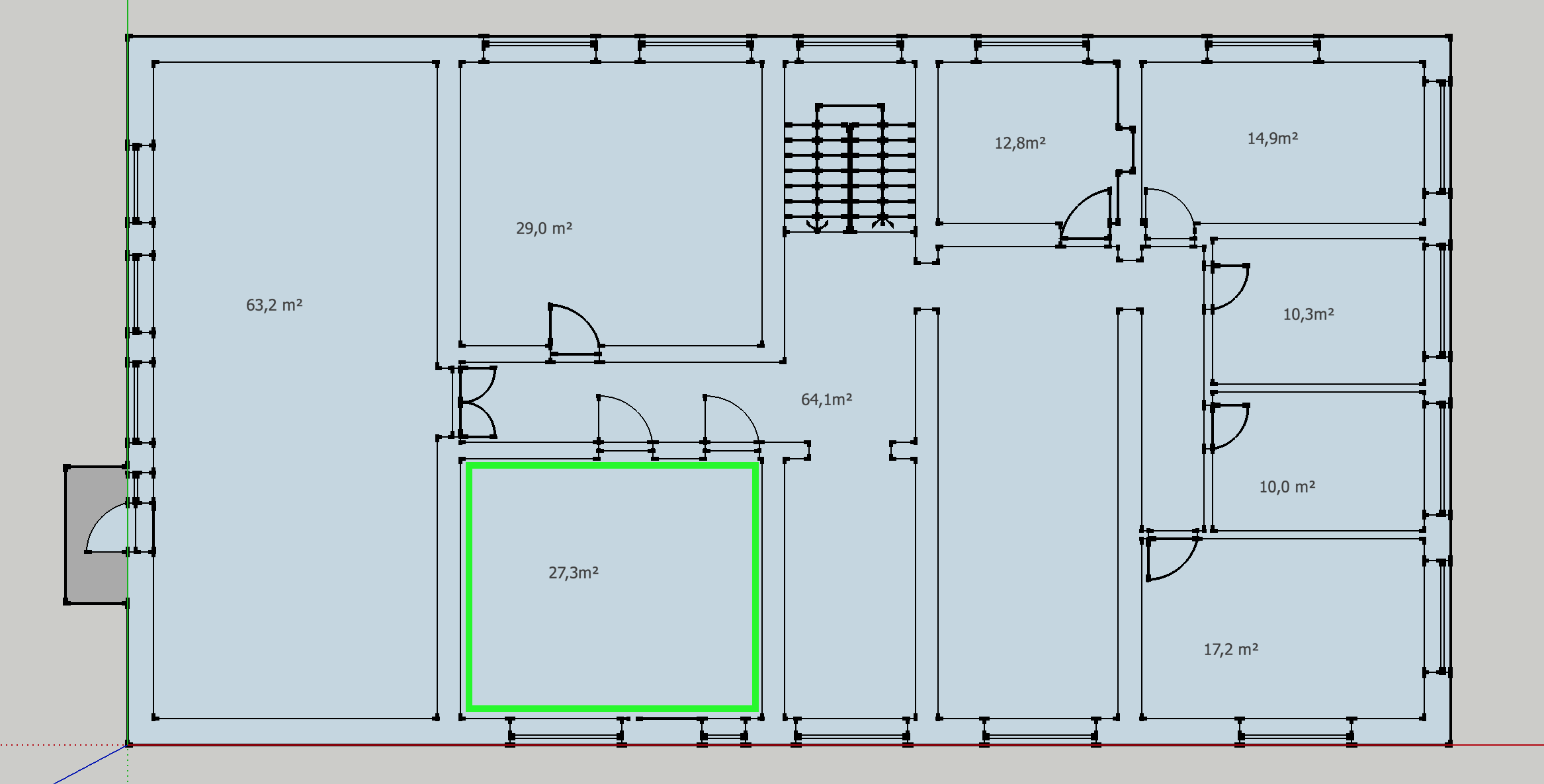 Hanke sisuks on kahekordse büroohoone 2 korruse põranda valu. Joonisel viirutatud alas asuvad pesemisruumid, seal 4 trappi + mõned vee ja kanali otsad. Lõpptulemusena peaks põrand kogu korruse ulatuses olema samas tasapinnas ja piisavalt sile, et selle peale paigaldada parkett. Valupinda kokku 249 m2 ja valu paksus varieerub 6cm kuni 9 cm'ni, kogu ettevalmistus valuks on tehtud.
