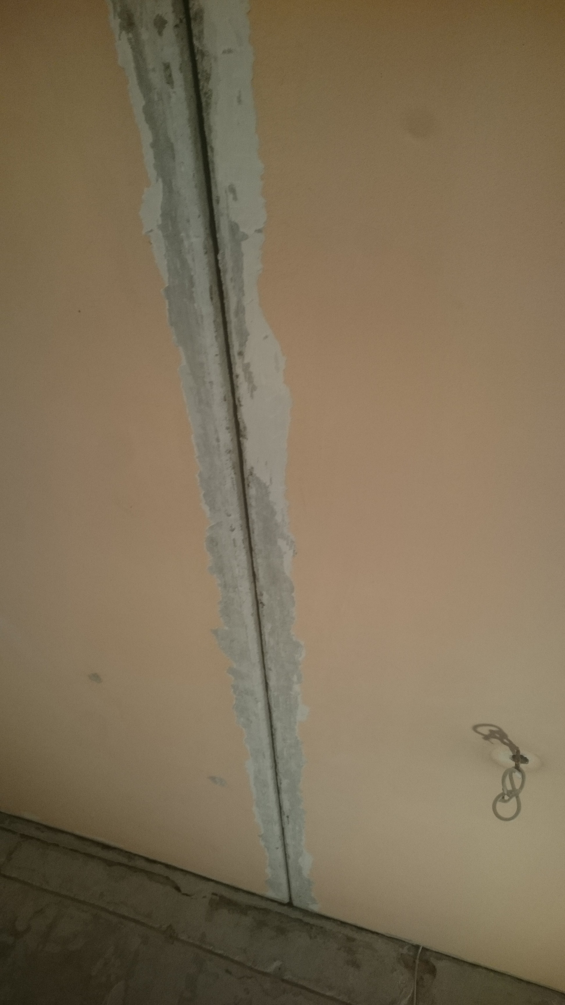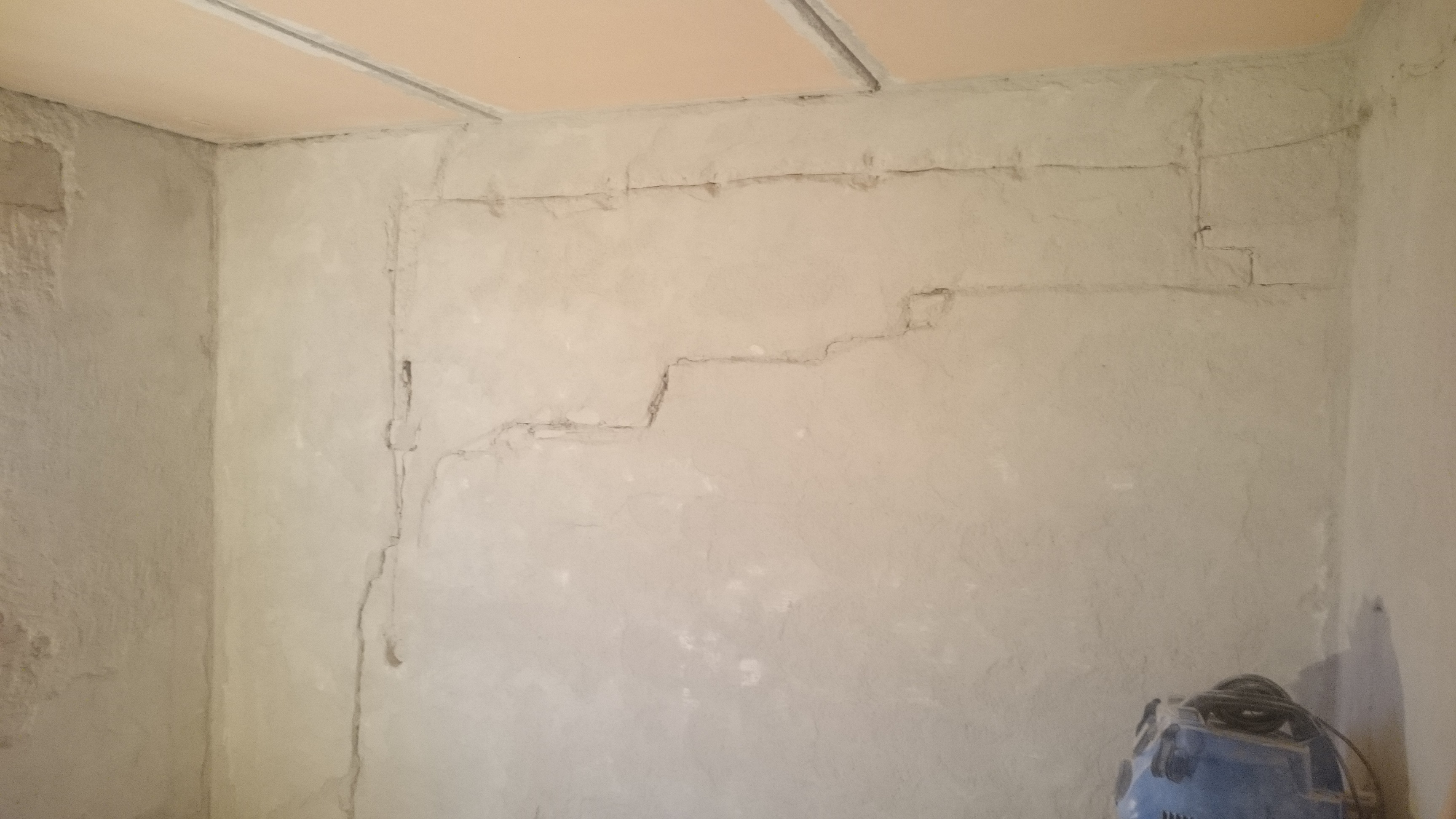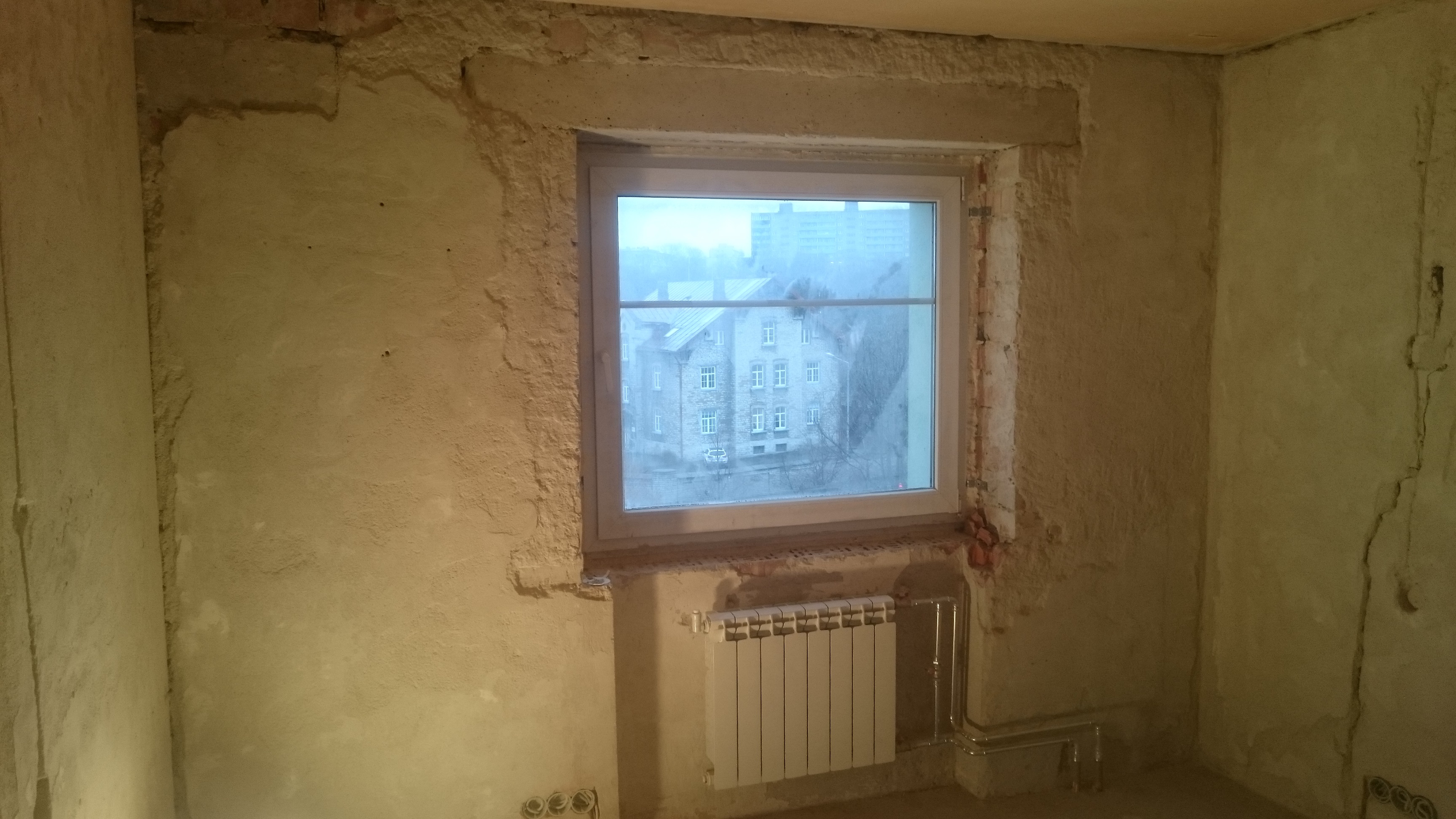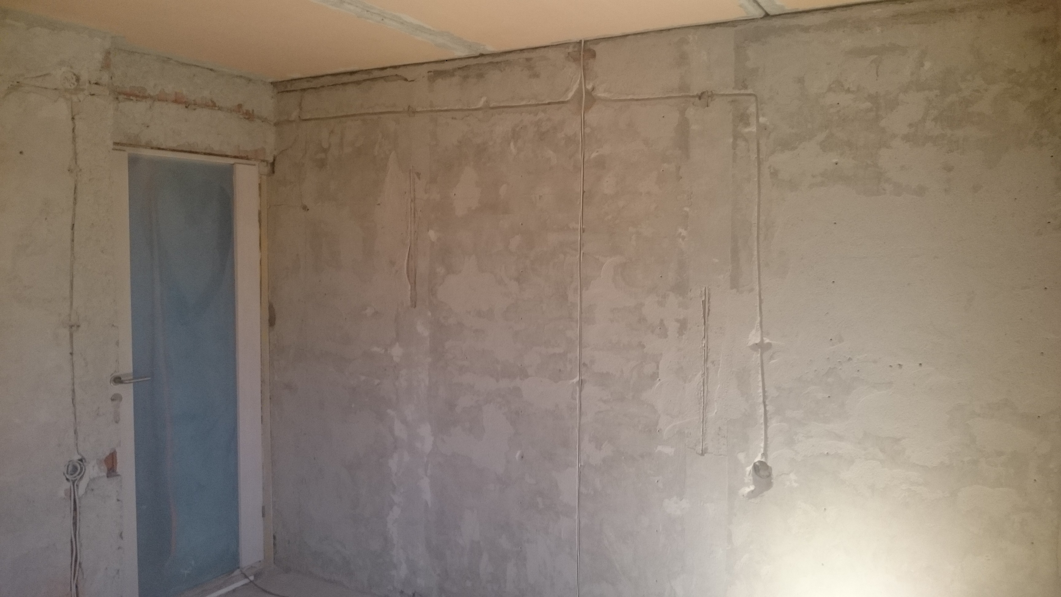 Vana värv ja lahtine krohv eemaldatud, lae betoonpaneelide vahed puhastatud. Seinad vana krohviga juba sirgeks aetud, väga kasvatama ega tasandama ei pea.