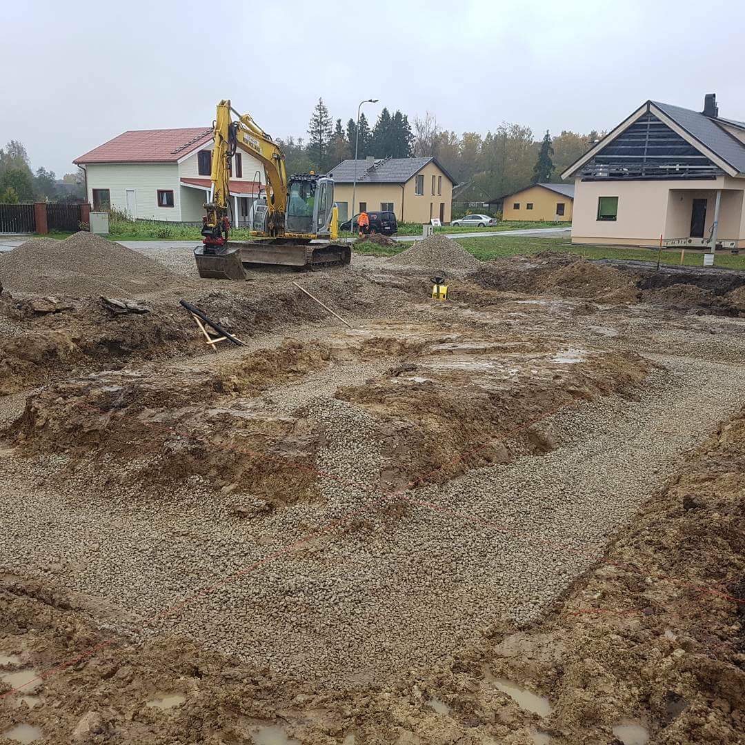 Elementmajale vaja teha vundament. Pind on ettevalmistatud: kaevik tehtud, killutaldmik tihendatud.
