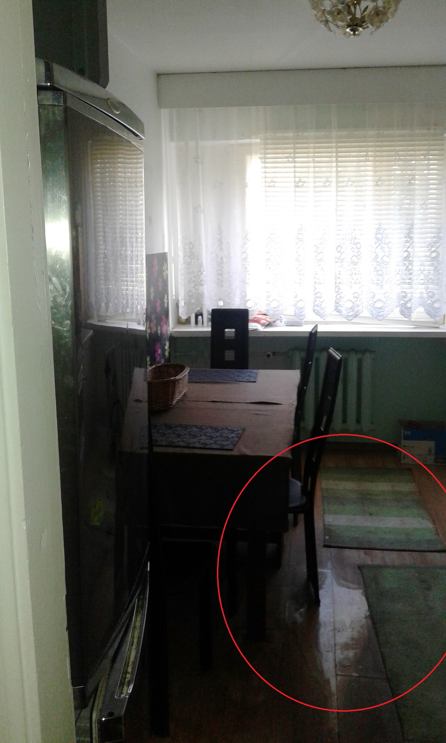 Toimus veekahjustus (kortermajas) mille tagajärjel kogu köögi ulatuses tõusis üles laminaat ja hallitas põrand alt, plaadid ja sein (Väikeplokk tsement) pragunes plaadid kahjustatud