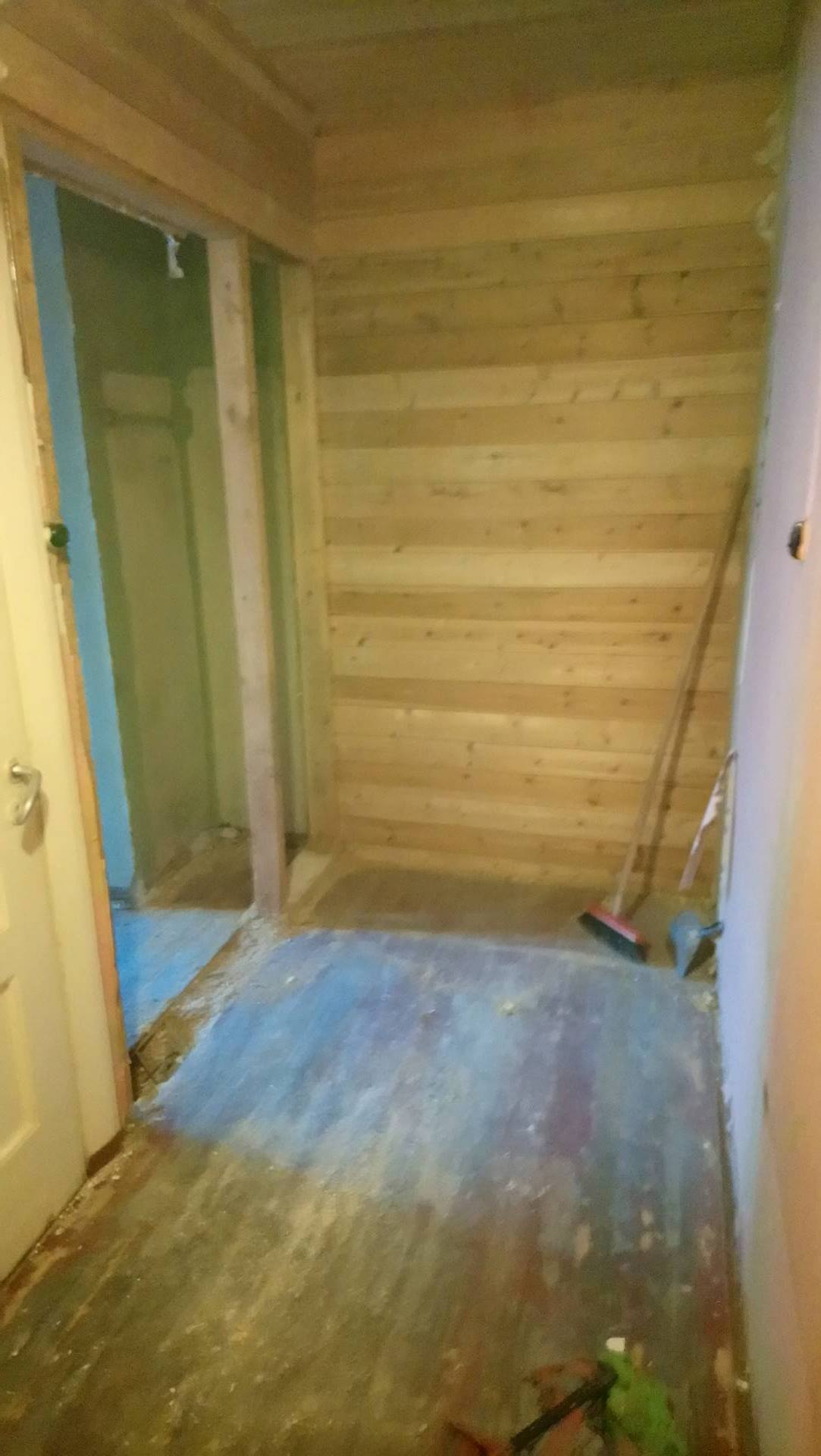 Põrand: ~6m2. Põranda all hetkel saepuru ja teadmata, kas on paneel kahe korruse vahel. Selgub, kui vana põrand eemaldada.